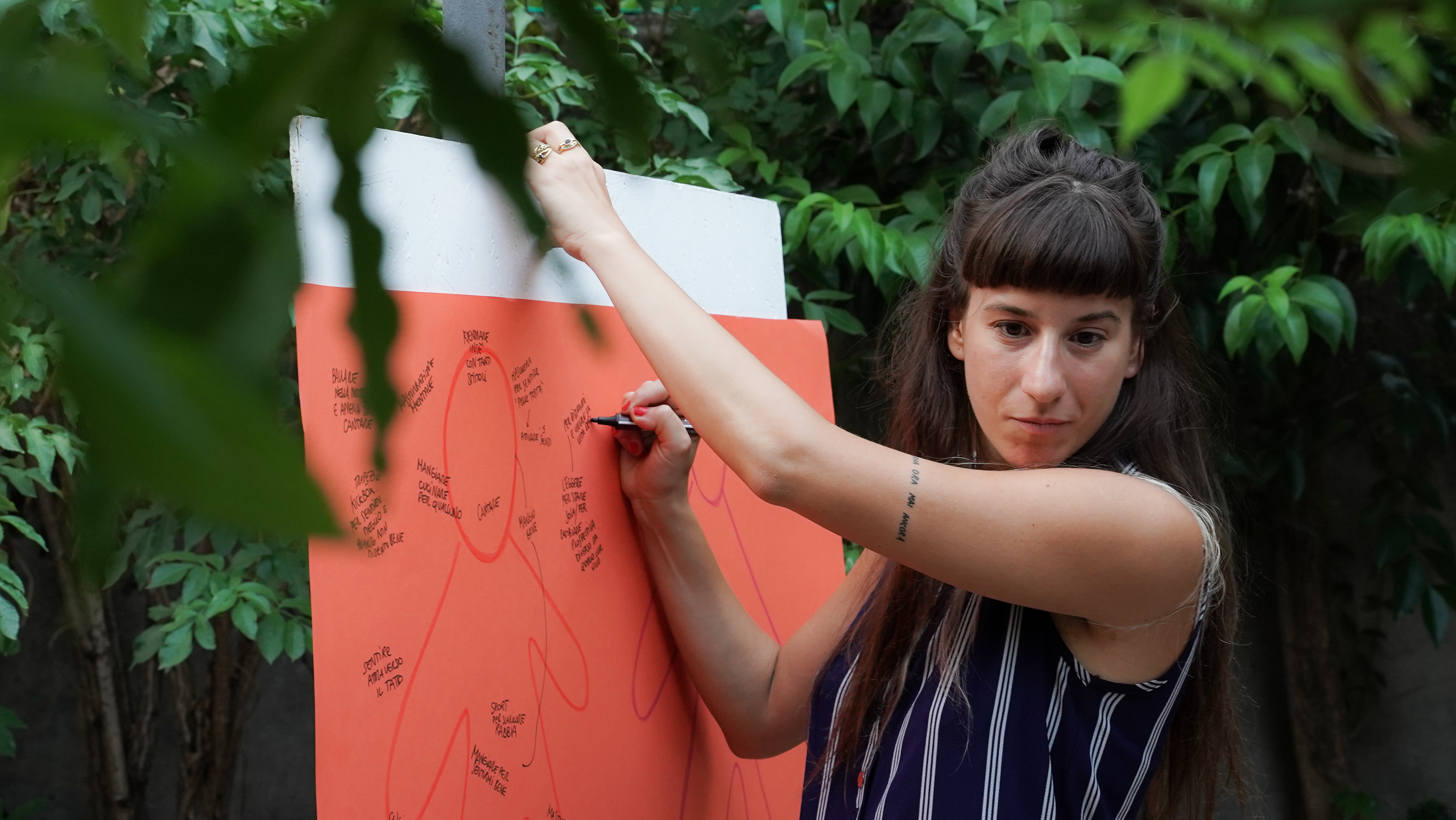 Se con il collettivo Call Monica questo percorso parte dall’osservazione di come i corp* interagiscono con lo spazio fisico della dimensione urbana per riappropriarsi dei gesti e dei luoghi di una geografia affettiva, Ginevra Petrozzi riflette sull’idea di futuro andando oltre la linearità del tempo e proiettando desideri e aspettative mediati dai linguaggi algoritmici. Giulia Tomasello indaga la salute intima della donna o di chi è dotato di vulva, nell’ottica di un superamento di stereotipi e tabù relativi ai fluidi vaginali, coinvolgendo l3 partecipanti in un momento di co-progettazione di dispositivi per l’autodiagnosi e la cura.