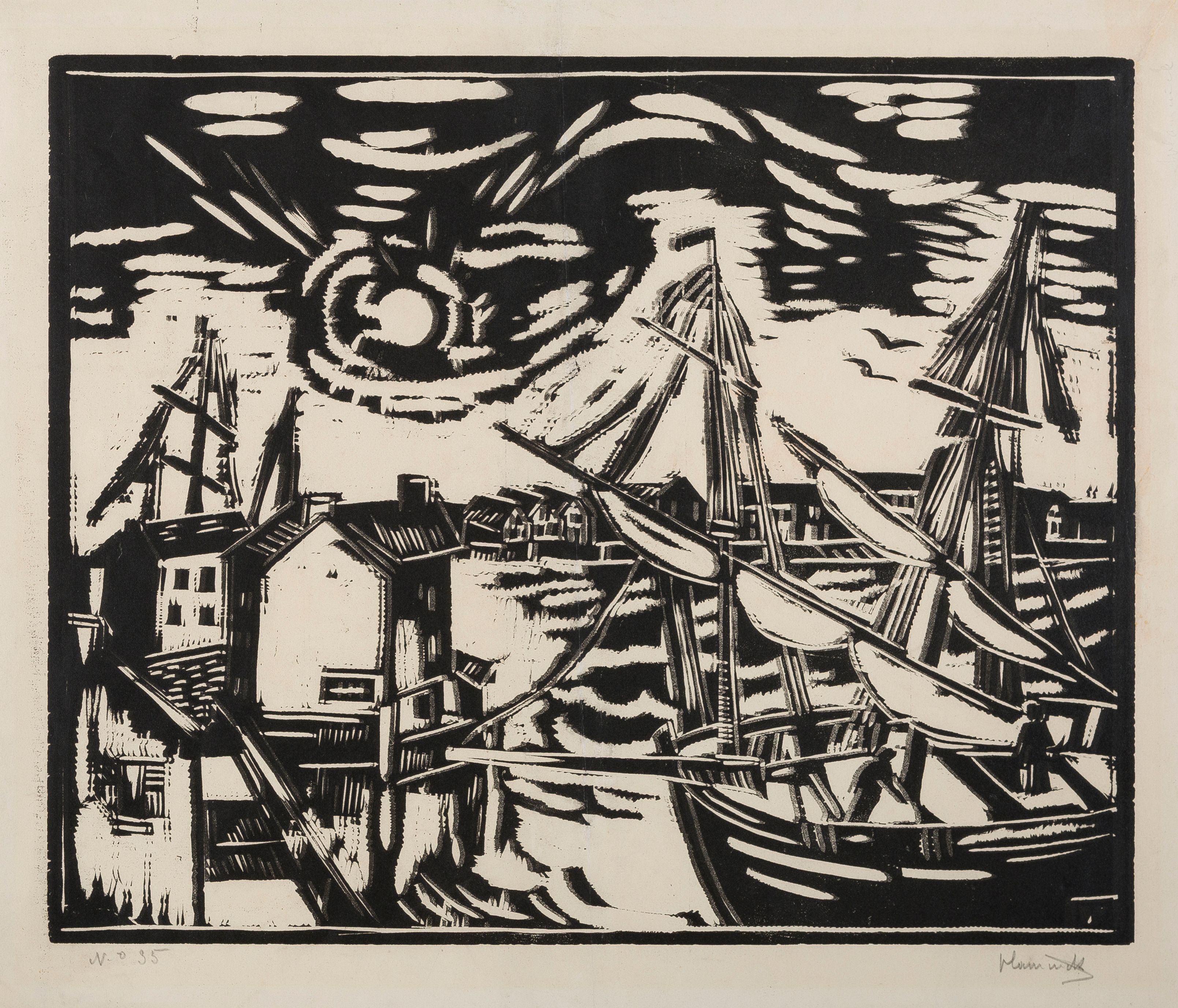 Anche l’opera di Maurice de Vlaminck, Le port de Martigues, porta con sè la potenza del segno. Grazie alla tecnica adottata dall’artista l’opera sembra quasi olografica, portando sulla carta un veo e proprio movimento.