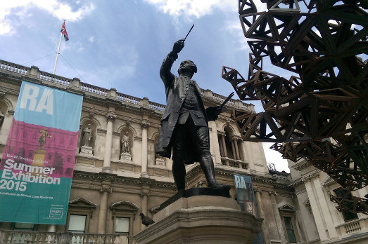 Come overwhelmed è anche la povera statua del fondatore della R.A. Joshua Reynolds, minacciato dalla scultura gigante dell’accademico Conrad Shawcross, The Dappled Light of the Sun, che infesta e invade la Annenberg Courtyard all’entrata: quasi a sottolineare l’apertura alle tendenze artistiche più moderne delle ultime edizioni della mostra, storicamente rappresentativa di un certo conservatorismo reazionario.