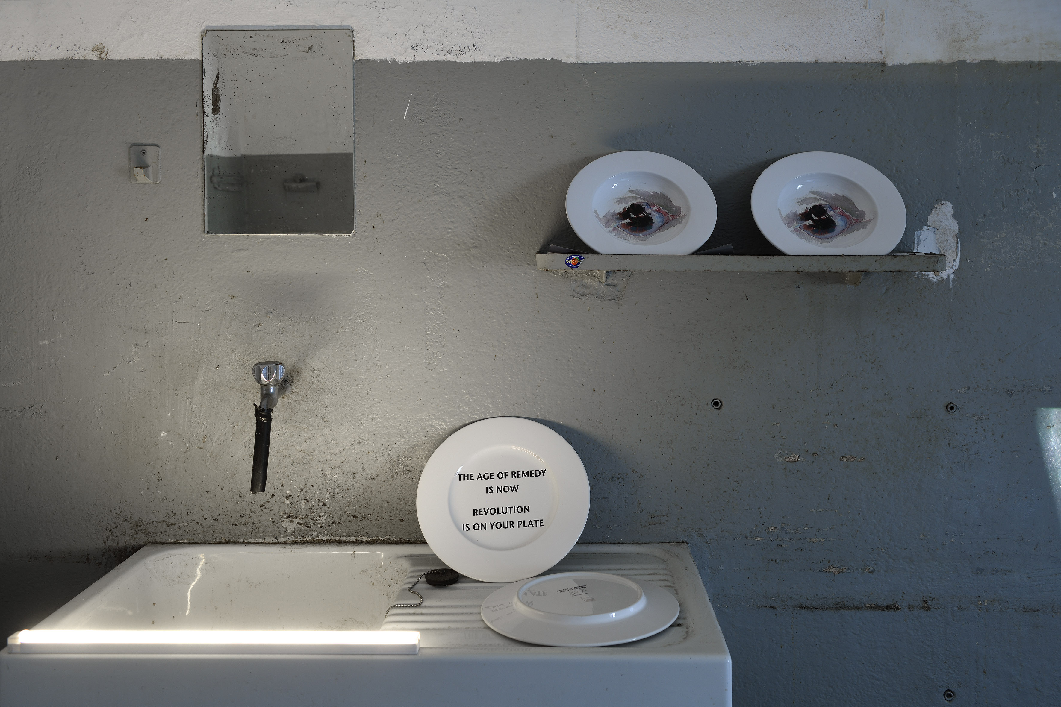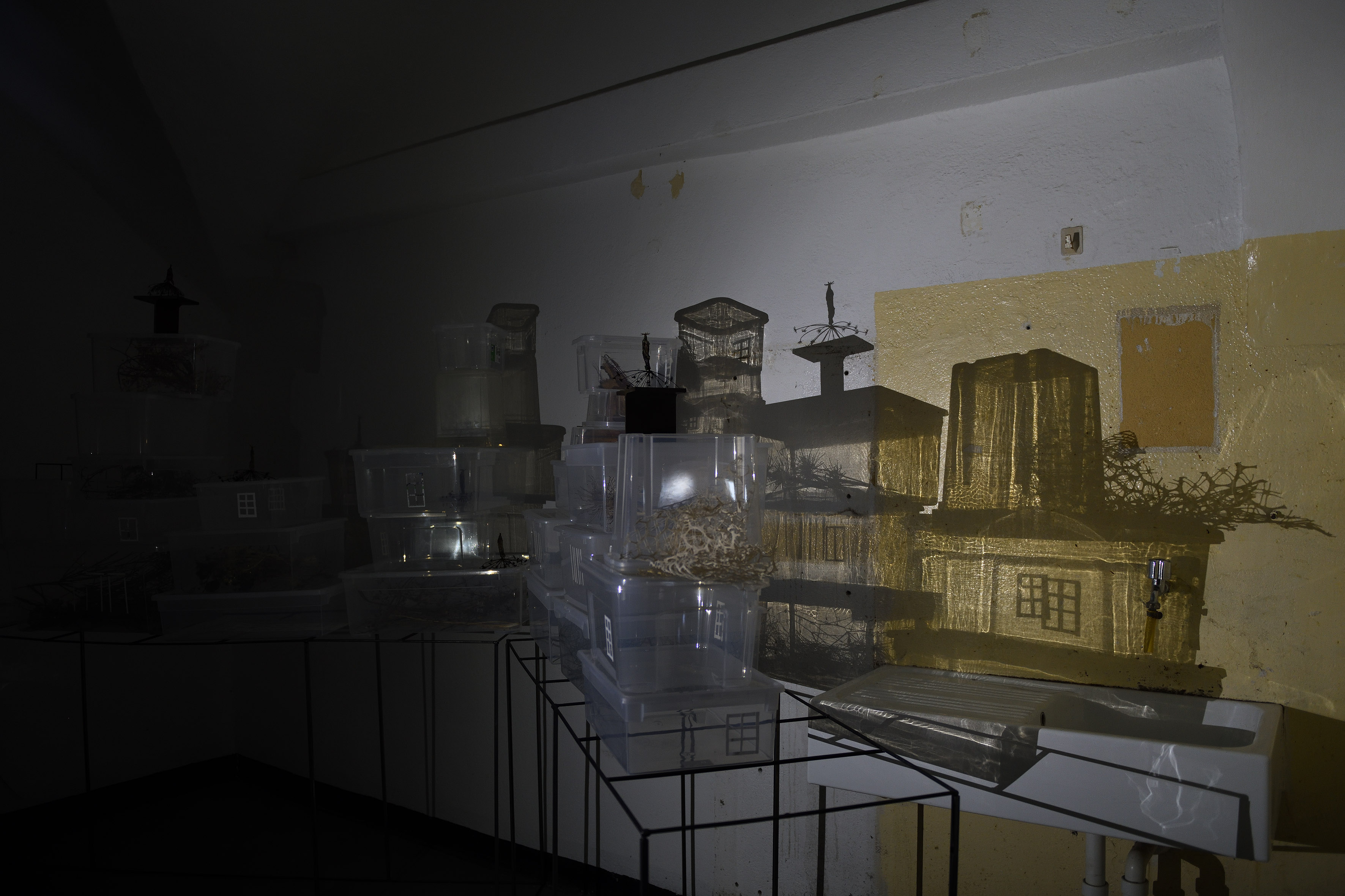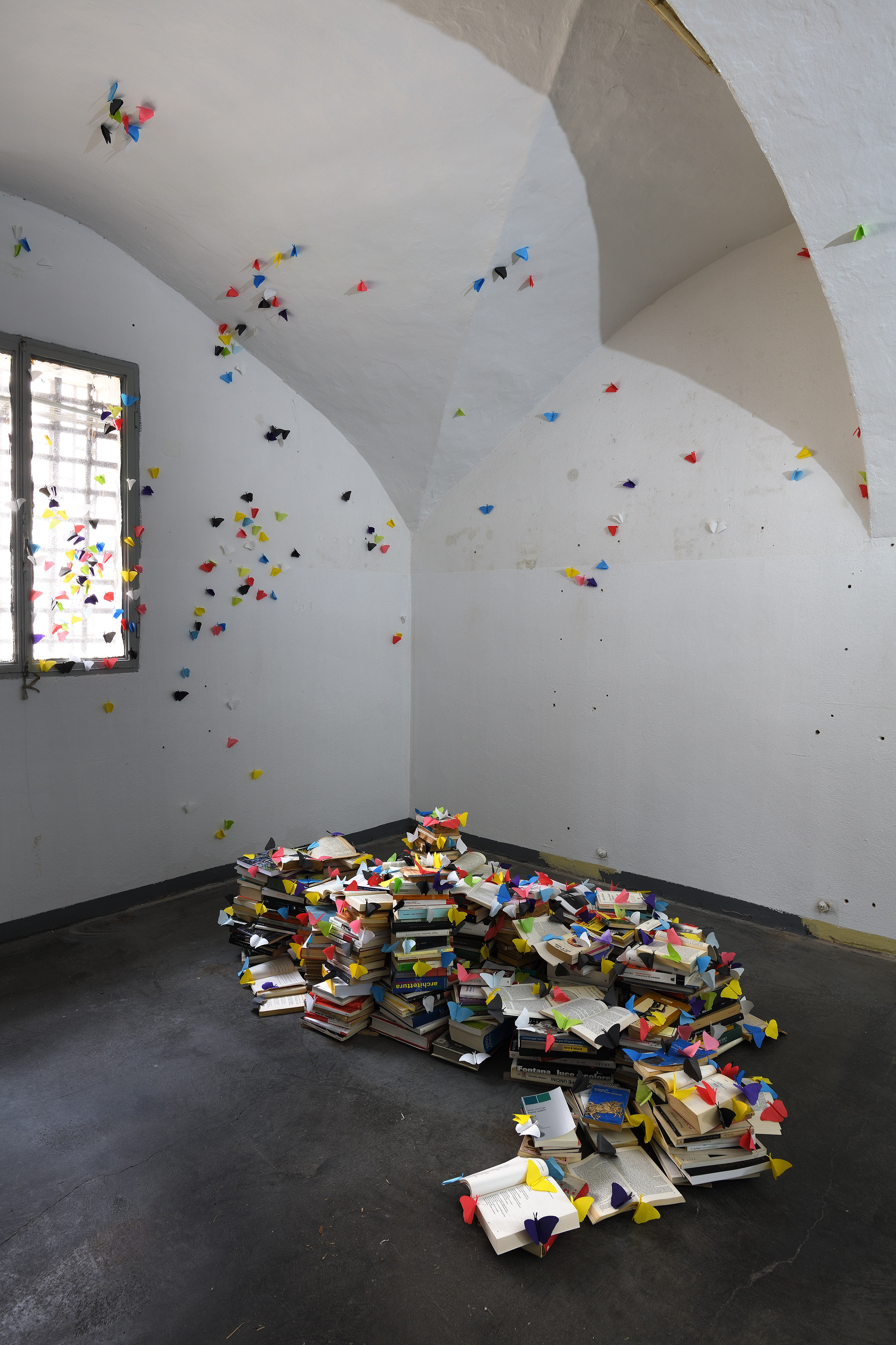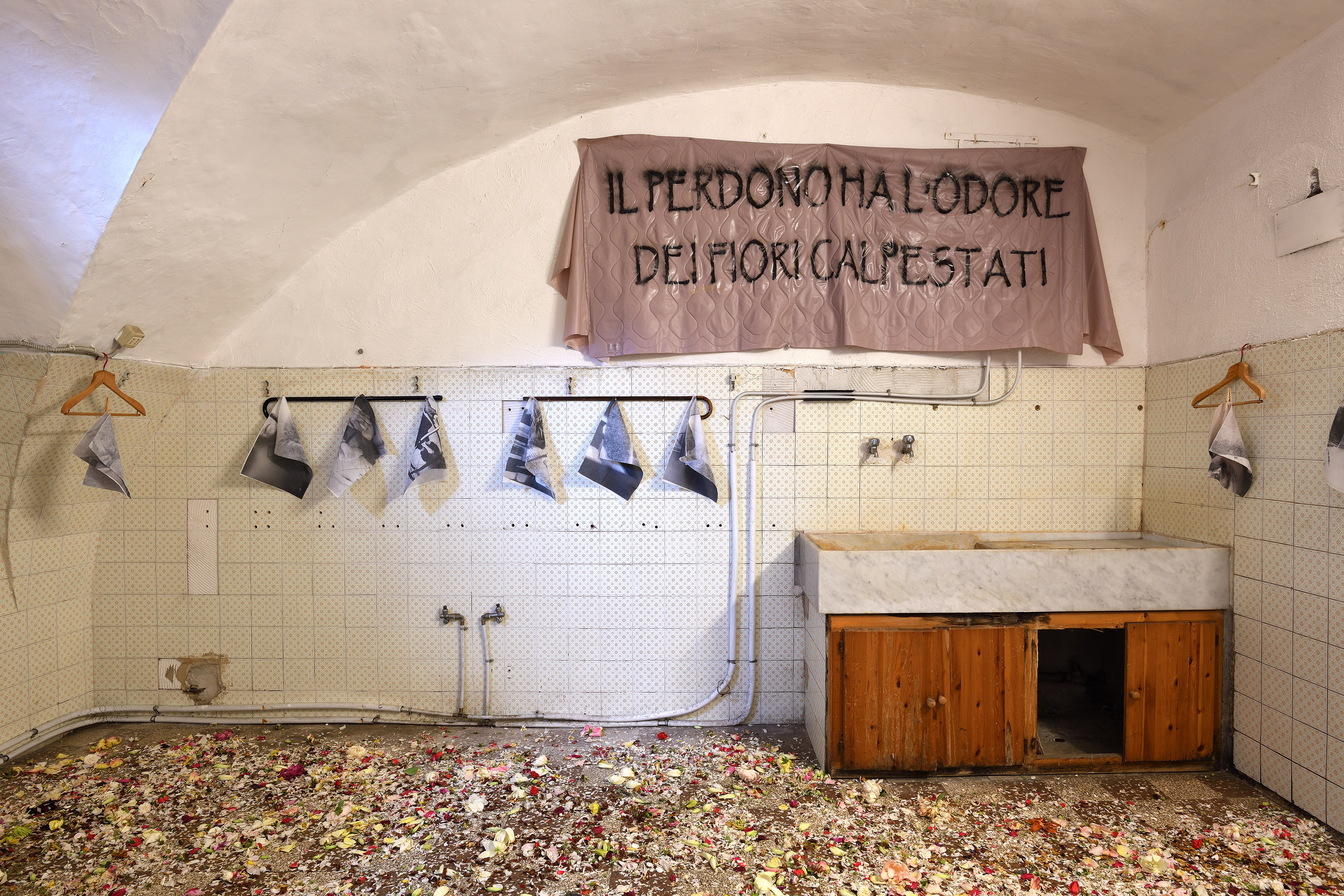 Al piano ammezzato, Il perdono ha l’odore dei fiori calpestati di Matteo Musetti affronta con delicatezza la fragilità della condizione umana, mettendo in scena una riflessione su perdono, cura e abbandono, con fotografie stampate su salviette di tessuto non tessuto e sorrette da bastoni usati in RSA. Il percorso procede con diverse installazioni sui temi della prigionia, della solitudine, della libertà e dei confini tra individuo e società.