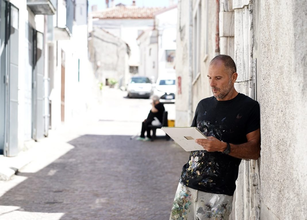 Un lungo viaggio, quello che l’artista sta conducendo, che è iniziato lo scorso giugno in Molise, lungo i sentieri della Mainarde, continuato a fine luglio in Basilicata, a Latronico, ai piedi del Monte Alpi, per raggiungere a settembre la Valsamoggia, in Emilia-Romagna, e il Parco Nazionale del Gran Sasso, dove andrà a concludersi tra il 21 e il 27 settembre prossimi sui Monti della Laga, nel territorio di Amatrice. La tappa emiliana è stata il momento per scambiare alcune parole con Angelo Bellobono, ragionando sul senso della sua ricerca e di questo modo di approcciarsi alla pittura.