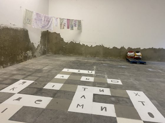 Giulia Casula, con Corosswords, ricerca il comune senso delle parole offrendo preziosi spunti di contatto tra paesi distanti. Ripartire dalle radici comuni, dal significato differente di certi vocaboli, dal valore anche di una sola lettera, può fare la differenza. Giulia ci crede così fermamente da scrostare le pareti con parole chiave, incasellare lettere come in giochi d’infanzia, appendere bandiere su fili condivisi, ripiegare abiti su bancali, mentre scorrono lezioni di ucraino su app open source. Una grande foto della costa sud-occidentale della Sardegna fa da quinta scenica all’installazione Buone Vacanze di Ambra Iride Sechi, tutti i suoi lavori in mostra sono incentrati sulla convivenza tra paesaggi incontaminati, servitù militari, demanio, turismo. Contrasti forti che infiammano l’opinione pubblica, ma che ricordano l’assetto geo-politico mondiale offrendo un ponte terribilmente solidale alla questione ucraina.
