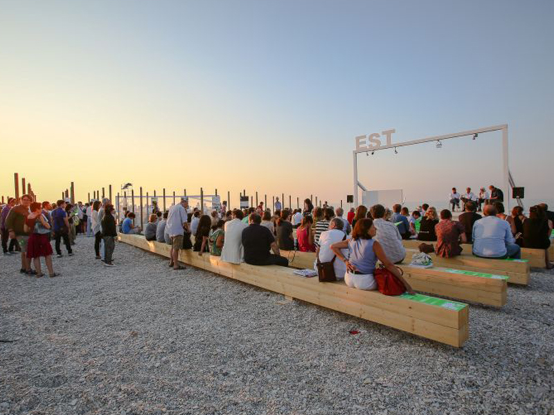 E visto che la trasformazione è uno dei temi portanti del progetto, anche questa volta l’allestimento dello scenario, curato da Tobia De Eccher, Lorenzo Tirabosco ed Edoardo Massa – vincitori della selezione di idee riservata agli studenti delle scuole europee di architettura, quest’anno realizzata in collaborazione con l’Accademia di Architettura di Mendrisio – sarà effimero e specificamente calibrato sul tema. NORDOVEST – SUDEST è il titolo del progetto, che scandirà lo spazio attraverso cinque micromonumenti orientati verso il mare.