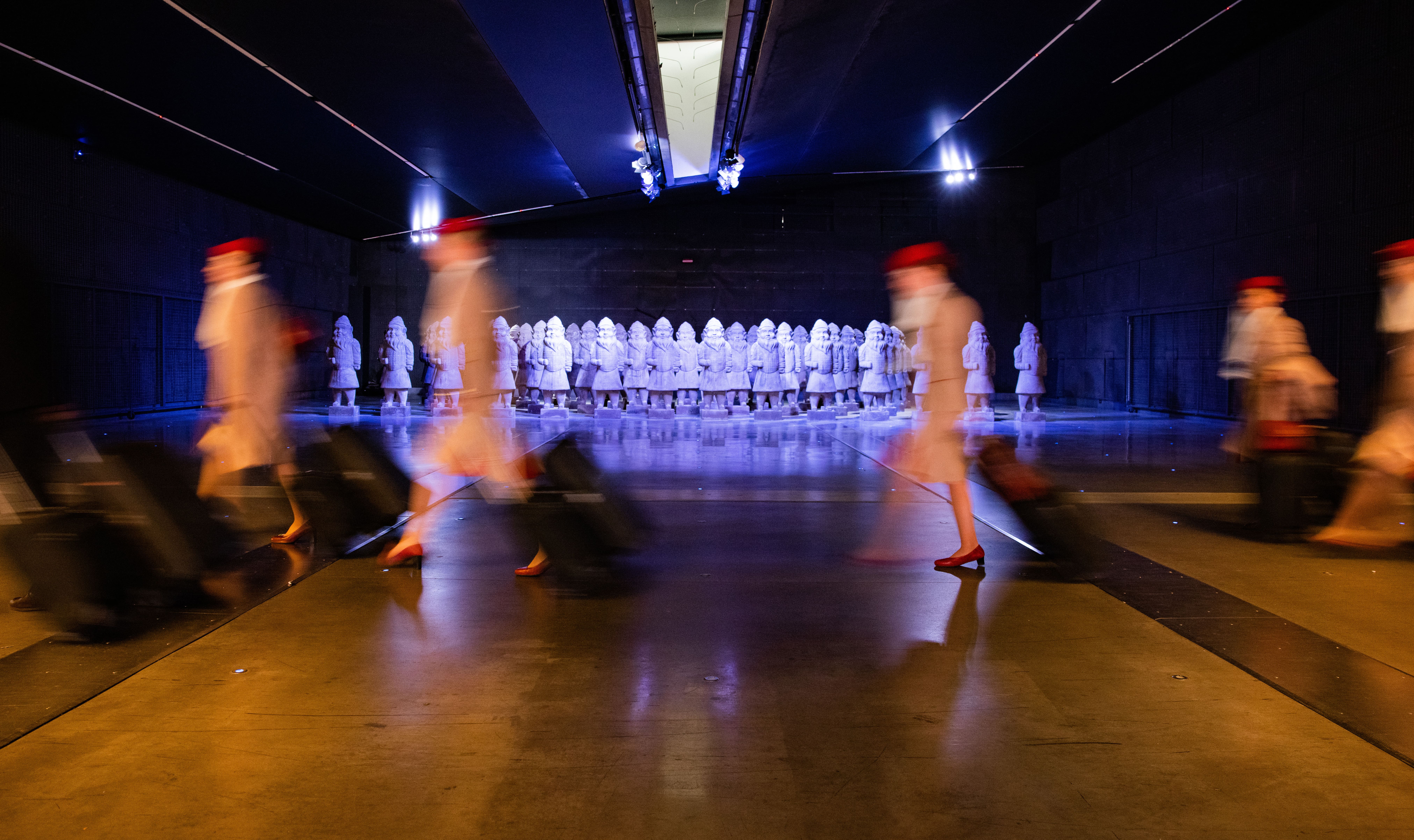 Il progetto di Max Papeschi vuole stimolare il dibattito sulle cause reali della possibile estinzione della razza umana con l’ironia tipica dell’artista. L’installazione Zwergen Dämmerung, letteralmente “il crepuscolo dei nani”, è un fermo-immagine in cui si cristallizza questo momento storico, basato su due temi principali: la minaccia della guerra e l’impoverimento culturale. L’artista lo ha visualizzato attraverso un esercito di statue alte 1,80, i cui corpi sono quelli dei fieri guerrieri di terracotta di Xi’an, mentre le teste sono di banali nani da giardino. Il fatto che il primo ritrovamento della civiltà aliena sia un esercito, è emblematico e ci racconta di un civiltà in perenne conflitto.