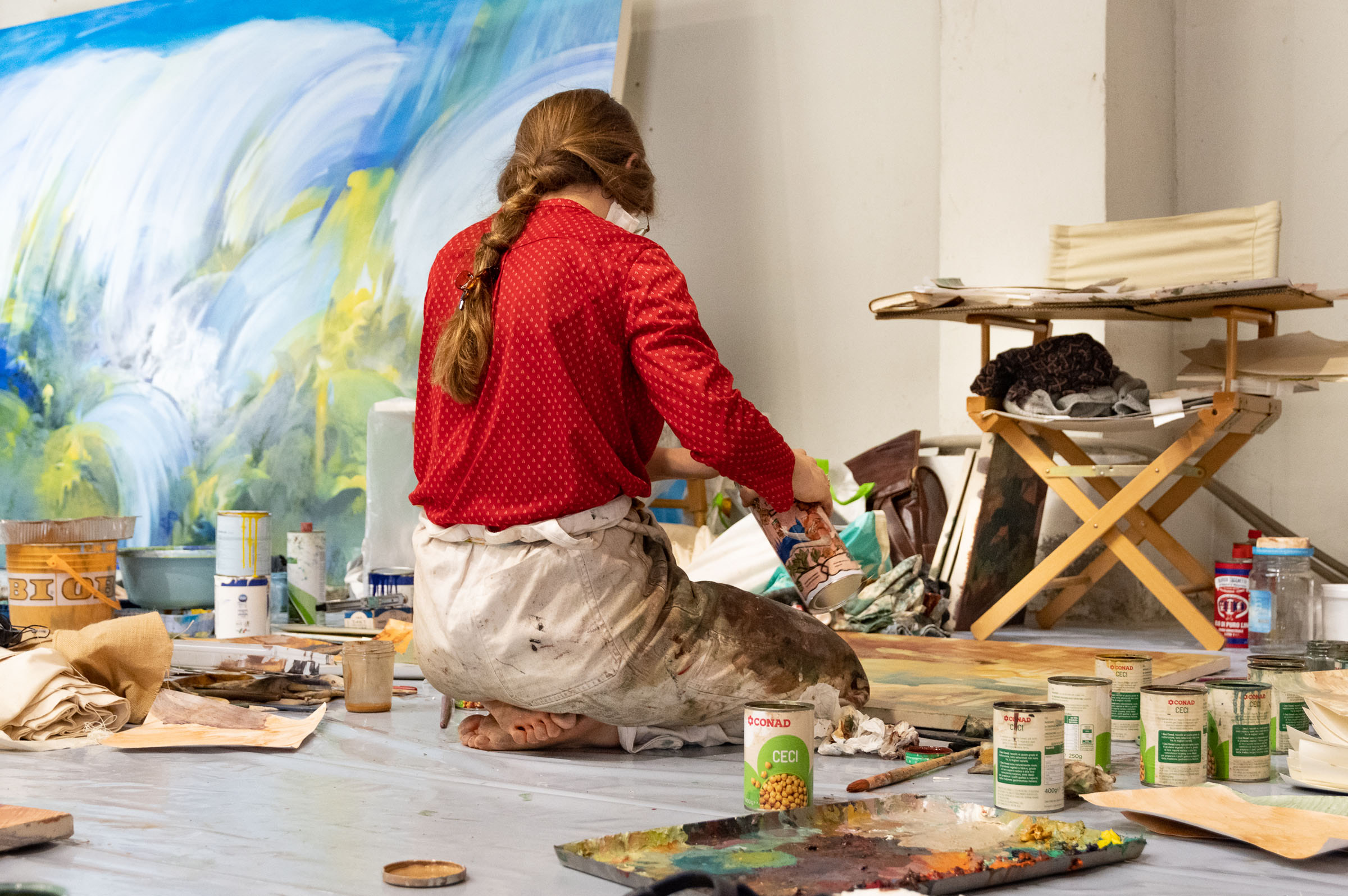 Una volontà perseguita anche dagli artisti che fanno parte di “Extra Ordinario Workshop”, il laboratorio di pittura dell’Atelier F: per quaranta giorni, il collettivo informale, composto da giovani studenti e artisti già riconosciuti anche a livello internazionale, ha l’opportunità di procedere con la propria ricerca in un grande spazio ceduto dall’azienda, uno spazio vuoto che, insieme, hanno saputo allestire con dei supporti di legno per poter dipingere ognuno nella sua postazione ma a diretto contatto con le altre. La grande possibilità data da questa iniziativa è, in primo luogo, quella di avere uno studio condiviso in cui essere liberi di sperimentare dimensioni e tecniche che solo determinati spazi possono permettere e di poterlo fare condividendo ricerche, esperienze, metodologie attraverso il dialogo con altri artisti, in linea con l’attività di Laboratorio Aperto di Forte Marghera.