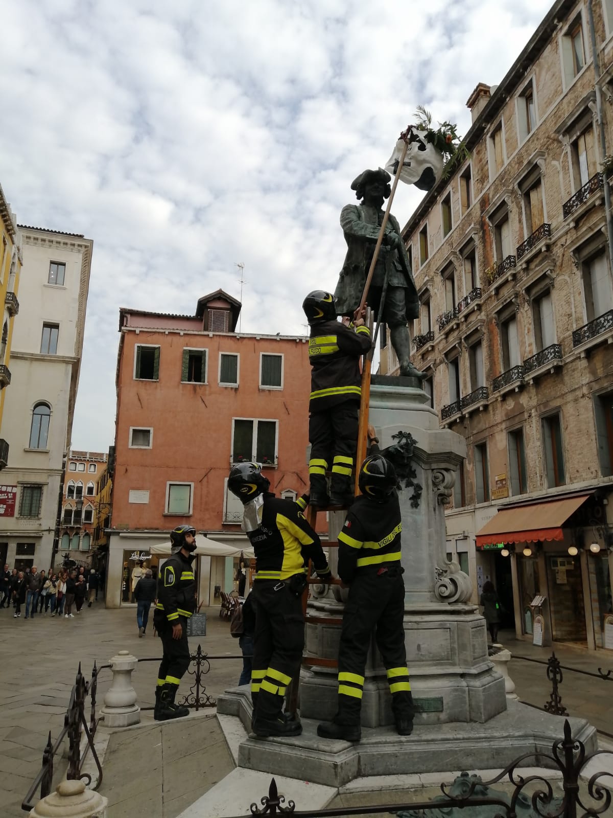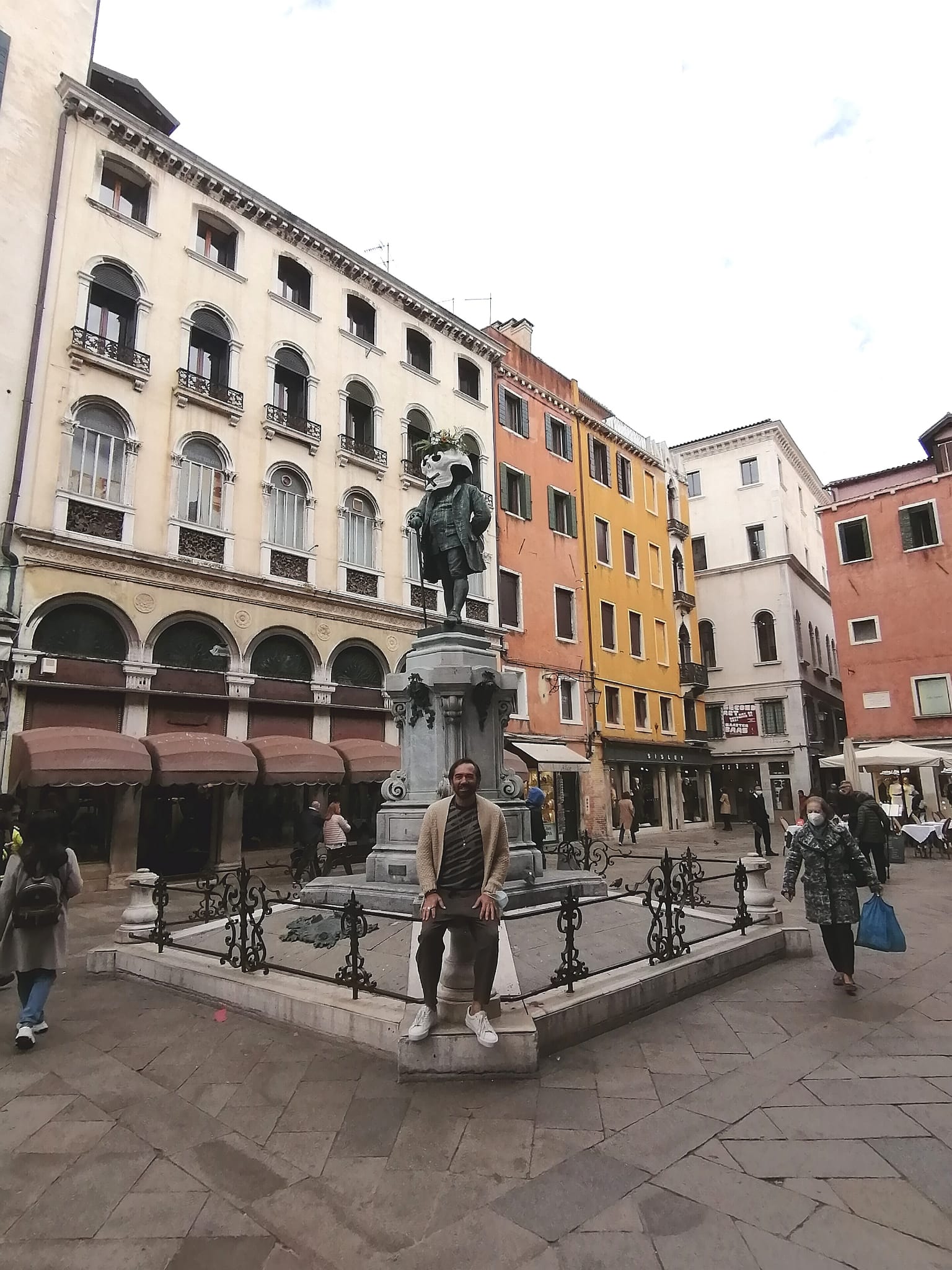 «GIURO. Stamattina Paolo Sarpi a Santa Fosca si è svegliato con una maschera posticcia, sul cui significato le migliori menti di Facebook si stanno interrogando; si dice che oltre che a Venezia vi siano stati episodi similari in altre rispettabili città – Firenze, Napoli, Roma? – e che anche colà le migliori intelligenze siano rimaste impietrite di fronte allo sfregio. Giuro. Scandalizzati. Un distinto fan della legalità ha invocato “idranti e manganelli, se ne avanzano tornando da Trieste” [Epatè le patatrac]».