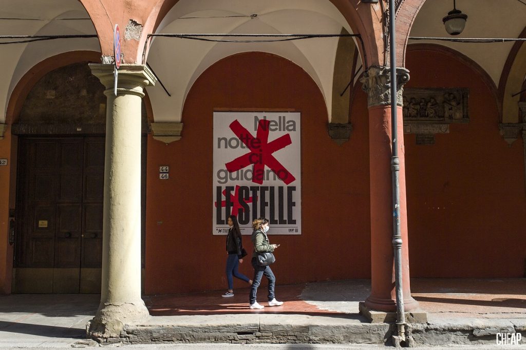 Nella notte lo guidano le stelle / forte il cuore e il braccio nel colpir. Felice Cascione scrisse il testo di Fischia il Vento, su melodia di una canzone russa, durante anni terribili, sotto l’oppressione della dittatura fascista. Medico e poeta, promettente pallanuotista, Cascione morì da partigiano, a nemmeno 26 anni, il 27 gennaio 1944, probabilmente fucilato dalle truppe della 356ma divisione di fanteria tedesca, nella quale militavano anche diversi fascisti. Le parole della sua canzone sono diventate però immortali, così come i valori sono i valori che quelle stesse parole raccontano. A diffonderli e a promuovere la conoscenza di questa storia e delle tante altre che vi sono intrecciate, “Nella notte ci guidano le stelle”, il nuovo progetto di arte pubblica presentato da CHEAP insieme a Testi Manifesti – nome sotto il quale Marco Petrucci realizza visioni grafiche su poster – per celebrare il 25 aprile e il 21 aprile, anniversari della liberazione d’Italia e di Bologna dal regime fascista e nazista.