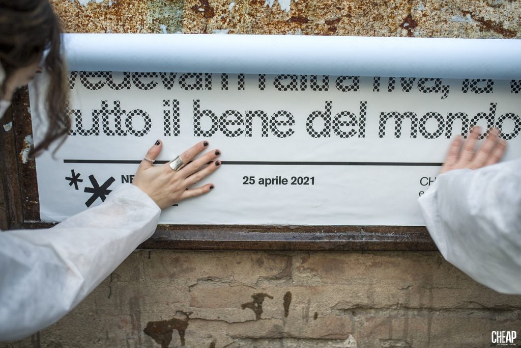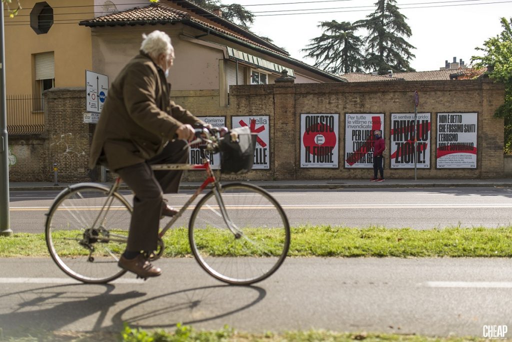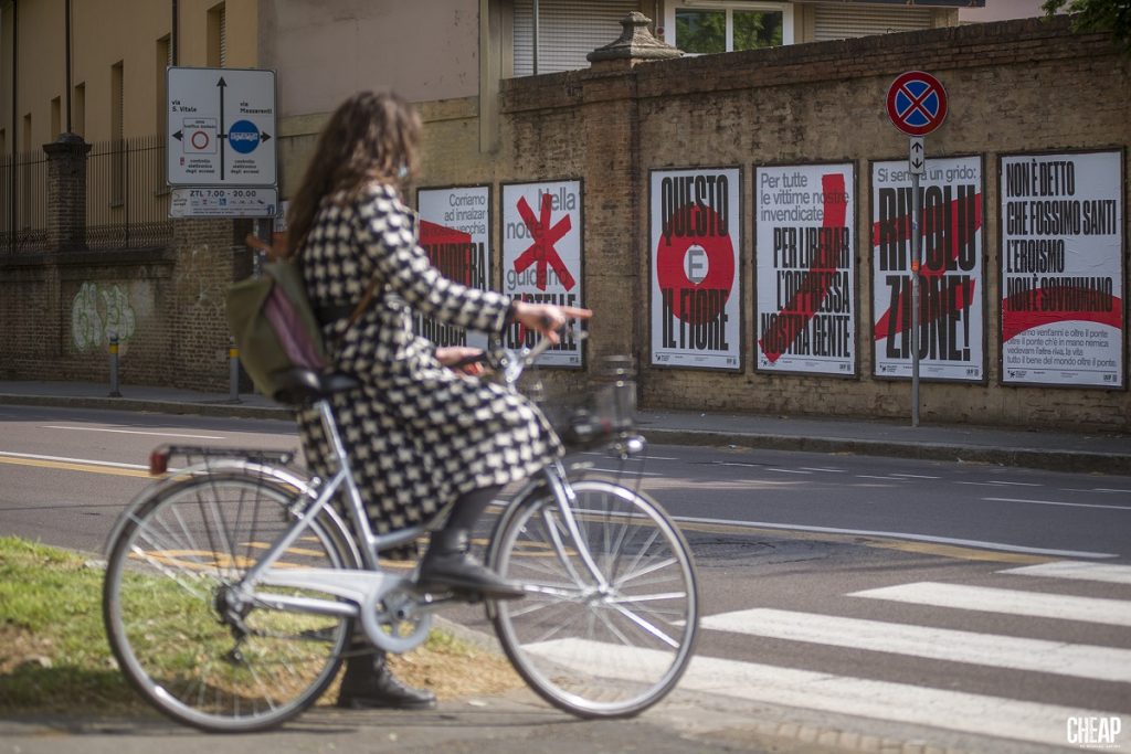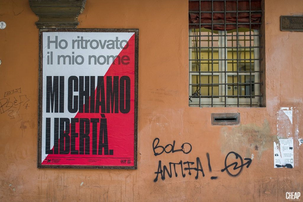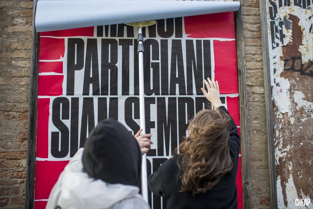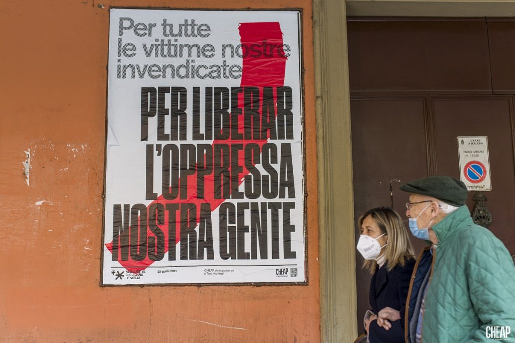«CHEAP ha riportato nelle vie di Bologna almeno l’eco di quella che sarebbe stata la celebrazione del 25 aprile 2021, se la pandemia non ci precludesse ancora l’accesso allo spazio pubblico, alle piazze e alle strade che ogni anno in quella data si riempiono dei corpi di chi vive Bologna, per ricordare collettivamente con un rito laico la Resistenza e la Liberazione dal fascismo», hanno spiegato da CHEAP. Per farlo, CHEAP e Testi Manifesti hanno ideato una serie di poster che riprendono i versi di alcuni canti di lotta partigiana: i canti sono stati suggeriti pubblicamente negli scorsi mesi dalla comunità che segue e sostiene il lavoro di CHEAP.