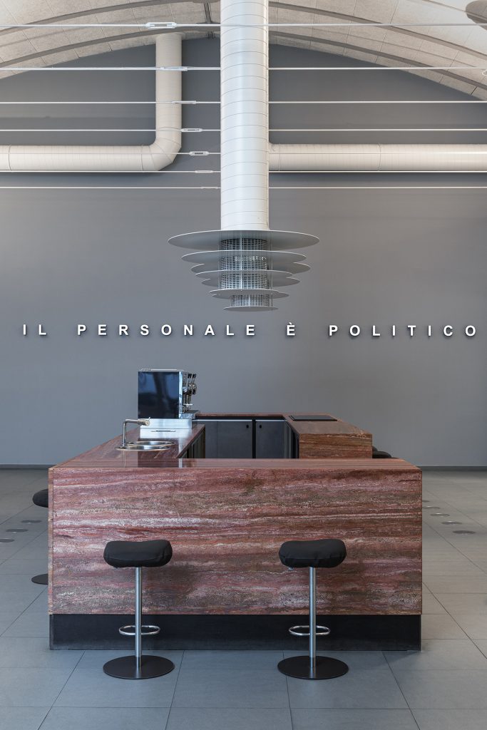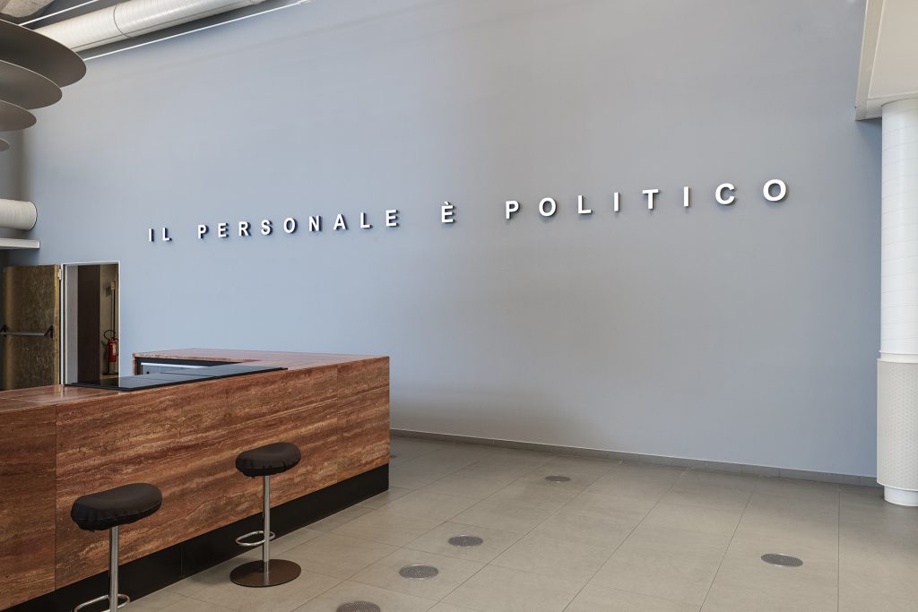 Traducendo “The personal is political” nell’italiano “Il personale è politico” ci imbattiamo in un’ambiguità (che potrebbe attribuire l’affermazione direttamente al personale dell’azienda) che in inglese non esiste: «Dire che il personale è politico significa comprendere che la posizione filosofica ed esistenziale dei singoli ha un effetto sulla società intera, e che ogni desiderio e reazione emotiva che esprimiamo sono il risultato del nostro rapporto con la società stessa e non solo con le persone con cui stiamo interagendo», spiega il curatore Marcello Smarrelli.