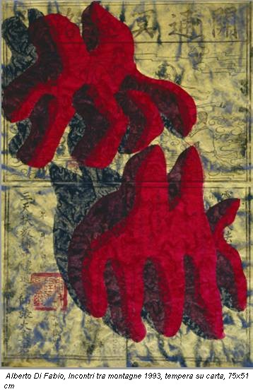 Sotto l’esperienza del sogno, Di Fabio immagina di entrare in contatto con un’entità alta paragonabile alla Montagna, che lui ama e ripropone nella sua ricerca, al fine di dare un senso alla sua spinta del fare arte e ricerca.