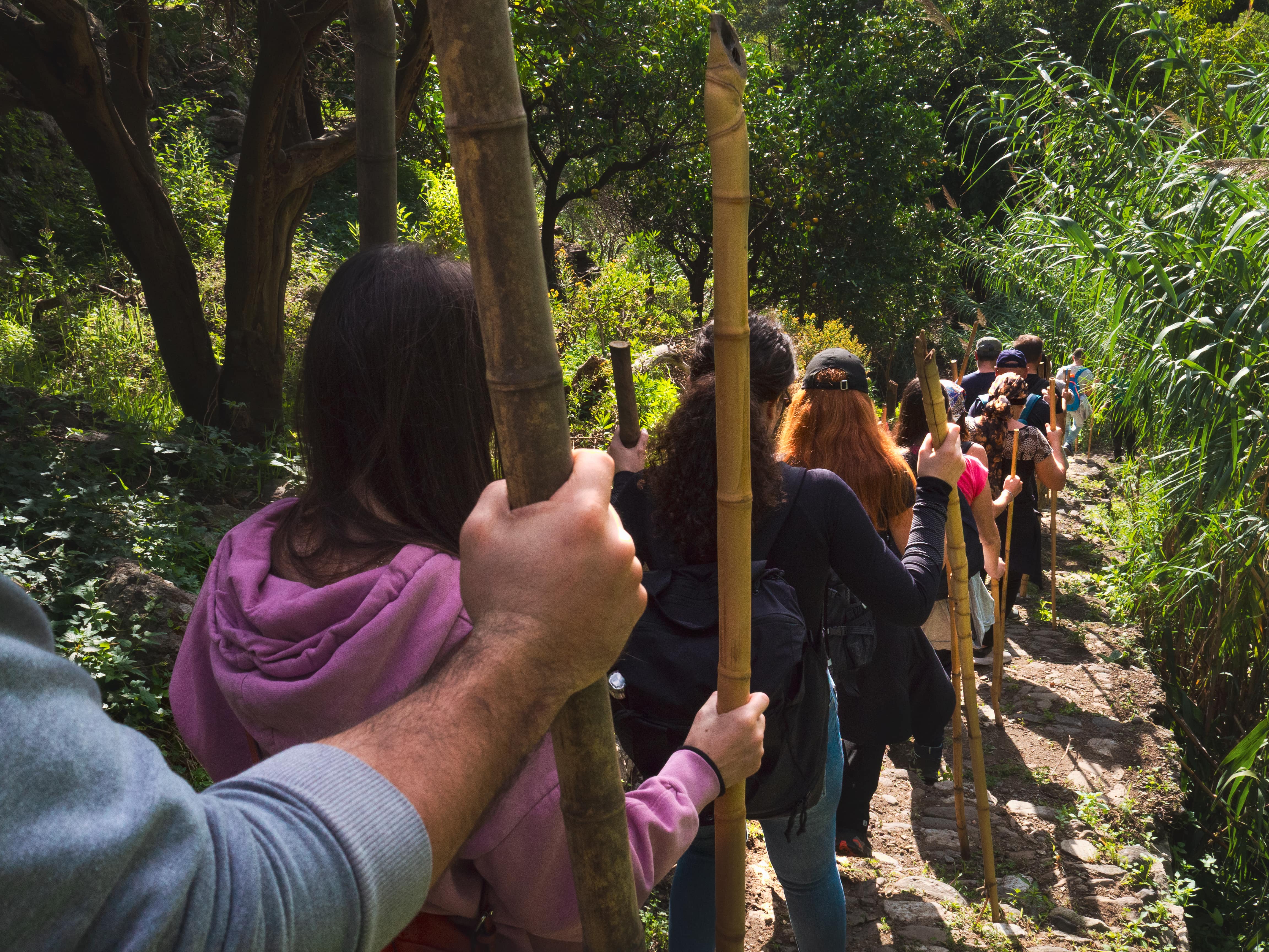 Negli ultimi anni, però, qualcosa ha iniziato a muoversi. A far vibrare nuovamente quei vicoli è stato un gruppo di giovani: Giuseppe Spuria, Enrico Gemellaro, Placido Carbone, Giuseppe Ferrera, Giovanni Scionti e Giovanni Spuria. Sei ragazzi che, insieme ad altri volontari, hanno ridato vita al Sentiero Bettaci, un antico percorso dimenticato, che oggi conduce tra rovi e memorie fino a un vecchio mulino ad acqua e a un ponte-acquedotto. Il sentiero è stato ripulito, mappato, raccontato grazie all’impegno di questi giovani volontari locali. E, come ogni buon sentiero, ha iniziato a diventare anche un ponte tra passato e futuro, tra la comunità e le centinaia di visitatori.