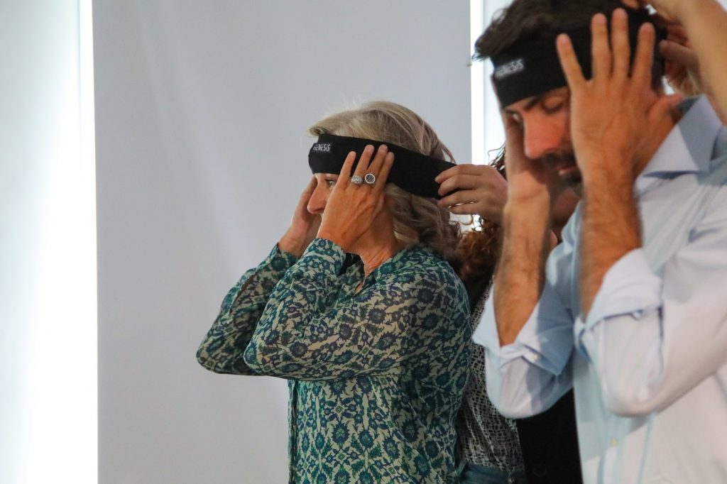 Grazie a una nuova tecnologia di Henesis Srl, una fascia dotata di particolari sensori e da sistemare intorno alla testa registra l’attività cerebrale durante la meditazione. In tempo reale, le informazioni raccolte restituiscono su un grande schermo le immagini dell’attività neurale, con uno spettro cromatico che oscilla dal blu al rosso. In più, dei grafici che mostrano l’evolversi dell’attività cerebrale dall’inizio alla fine del processo meditativo.