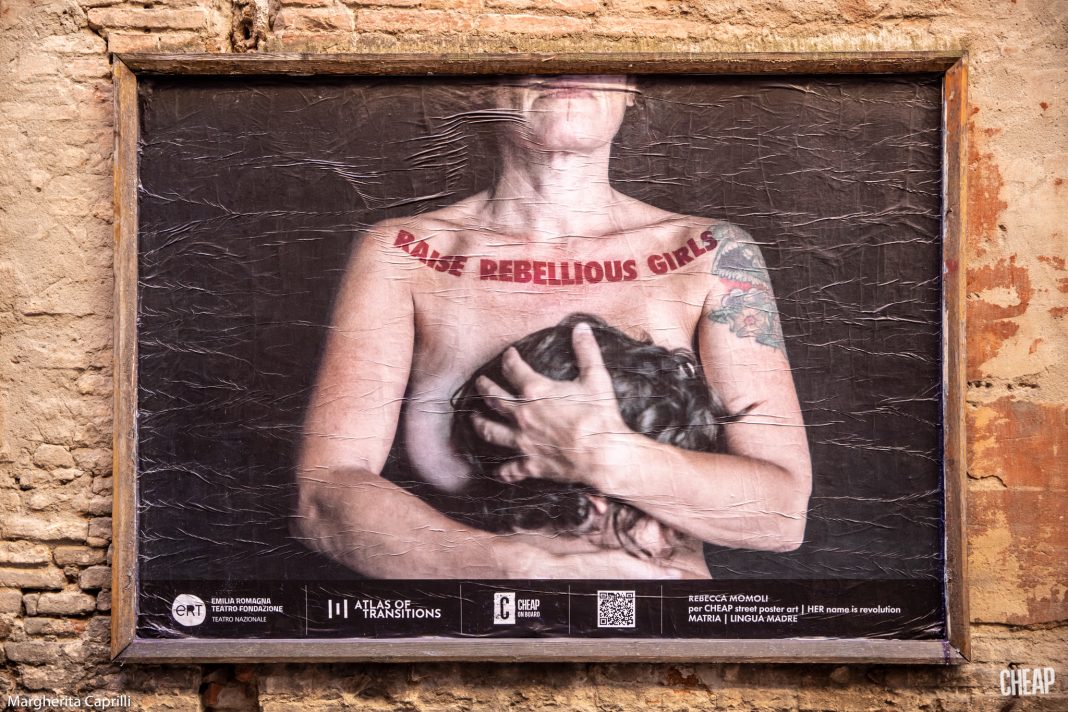 Her name is revolution, il suo nome (di lei, è importante specificarlo) è Rivoluzione. Questo è il titolo del nuovo intervento ideato e curato da CHEAP, realizzato da Rebecca Momoli. L’iniziativa di arte pubblica su poster più nota d’Italia, che trova spazio per le vie di Bologna, potrà essere ammirata fino alla fine del mese di ottobre.
