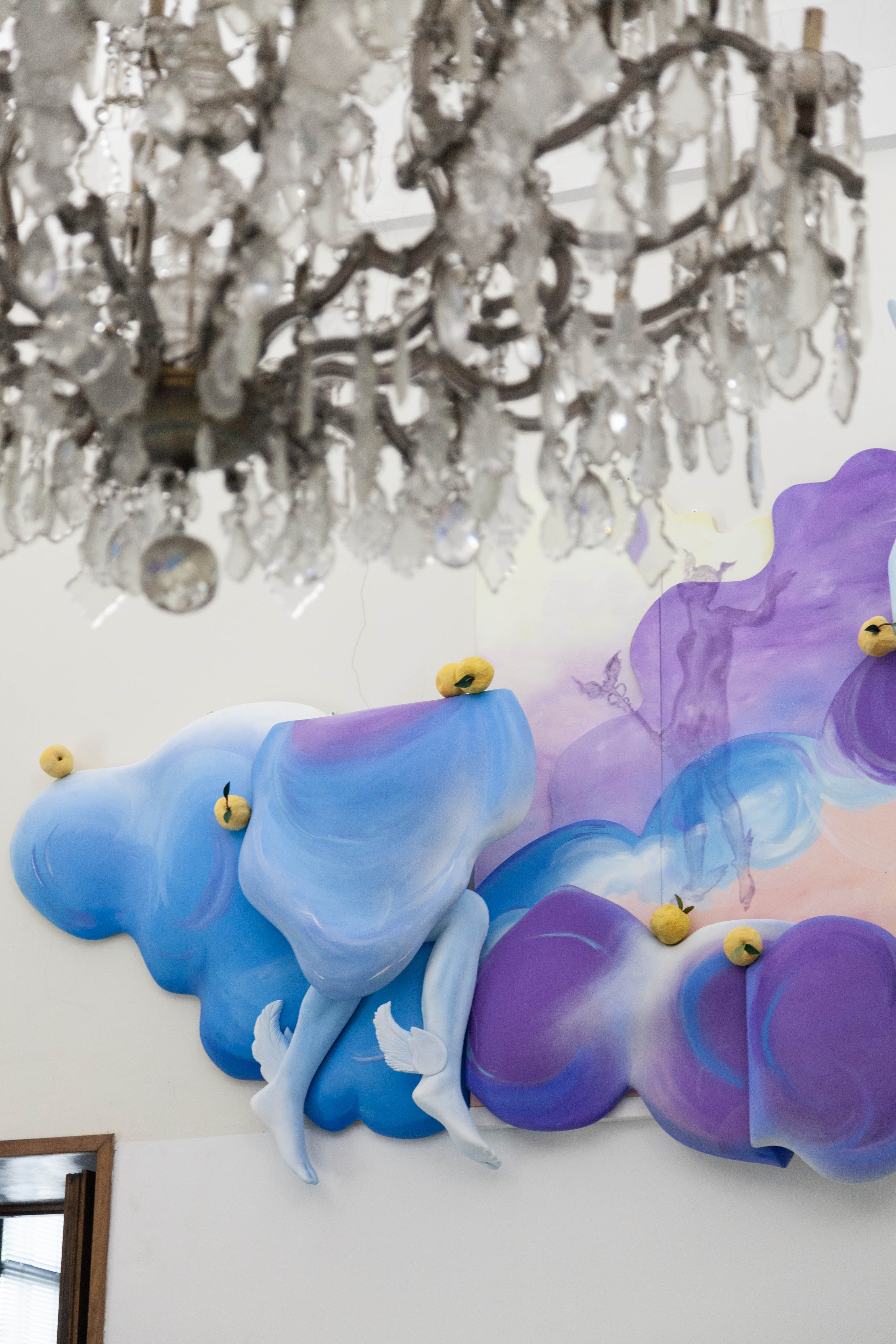 Nello specifico, quello che mi ha colpito è che annualmente sul terrazzo del Faubourg vengono raccolte le mele cotogne per fare la marmellata. Un aneddoto semplice: una famiglia che segue una ritualità e rinnova questo legame ciclico con la natura mi ha affascinato subito. Poi ho immaginato che tutto potesse iniziare in cielo, tra quei nuvoloni colorati che cambiano forma e ci intrattengono invitandoci a indovinare a che cosa assomigliano».