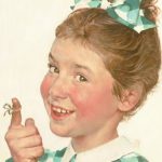 E infatti, accanto al mondo patinato delle illustrazioni, piatte e apparentemente senza spessore dei post Boy Making Football Tackle, the Flirts o Ragazza alla guida di una decappottabile, istantanea lucida della vita americana, ci sono i dipinti a olio. Il ritratto di Abraham Lincoln ne è un esempio, o la simpatica Girl With String, prototipo, forse, di quella che sarà una desperate housewife da pubblicità nel suo vestitino a quadri bianco e verde con tanto di fiocco.
