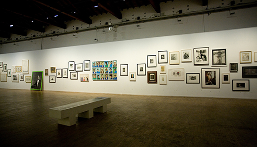 Il progetto espositivo si sviluppa sui due piani della Galleria Civica creando un ulteriore livello di contrasto nella mostra: mentre il primo presenta le opere secondo un modello a quadreria, apparentemente disordinato e isterico, ma che poi risulta misurato e preciso, il secondo segue una disposizione più regolare e tradizionale, rifacendosi all’elemento ripetuto presente nella gran parte delle opere qui esposte.