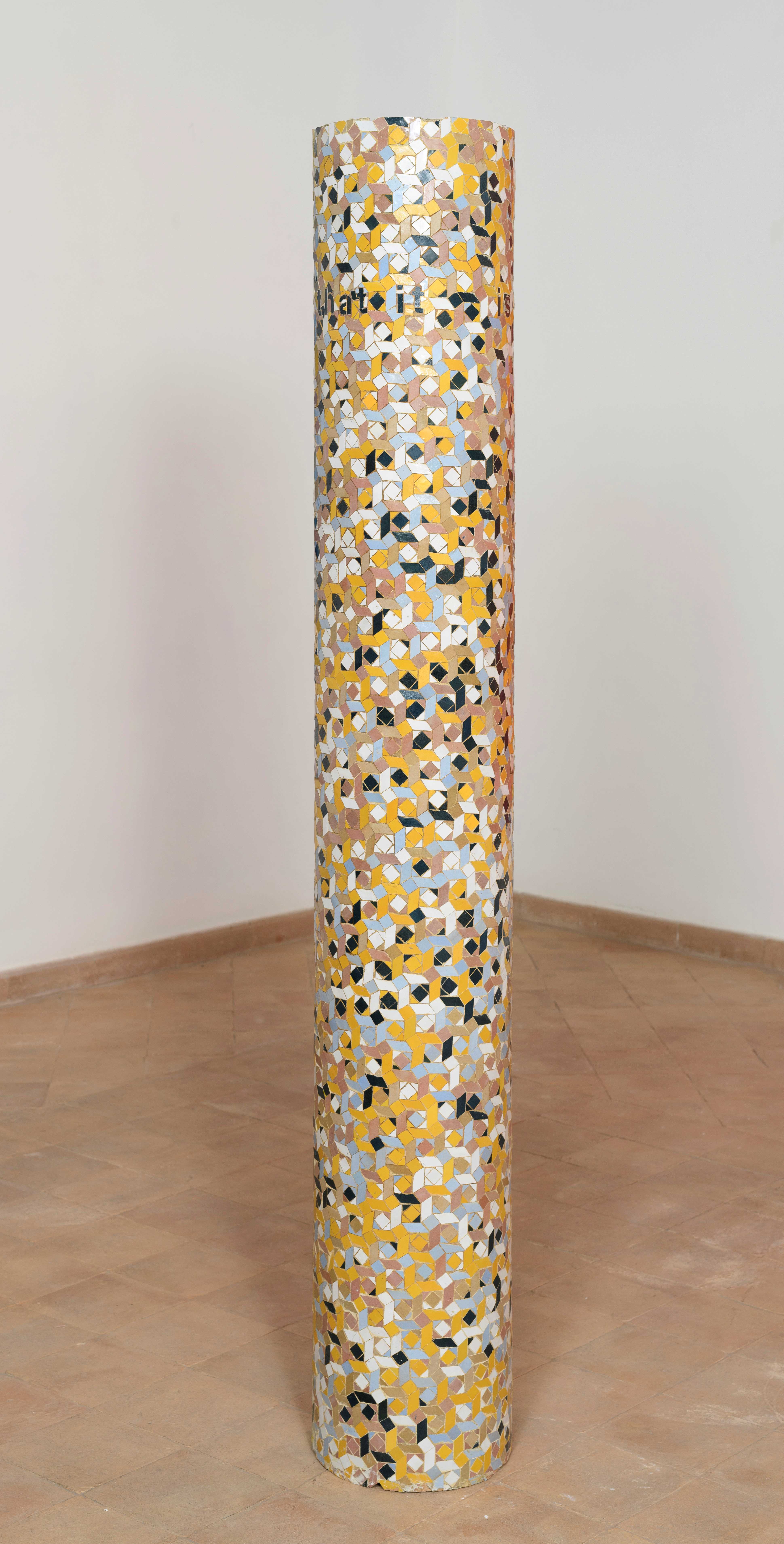 Mirabella, nato a Enna nel 1988, trae ispirazione dalla secolare tradizione del mosaico marocchino Zellij, caratterizzata da rigorosi pattern geometrici aniconici. L’artista però sovverte questo linguaggio decorativo, inserendo elementi come disegni, frasi e suggestioni che spezzano la rigidità delle trame. Questa trasgressione compositiva si traduce in quella che Mirabella definisce una “odissea visiva”, un percorso che intreccia culture e storie, creando nuove narrazioni intime e universali.