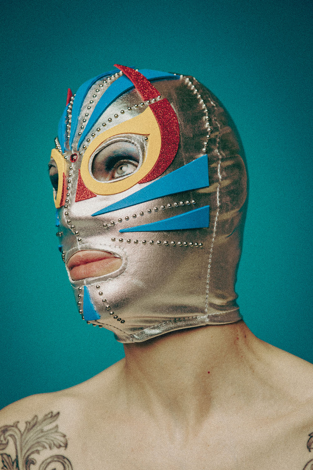 Nove maschere cucite a mano diventano i manifesti del progetto: indossarle vuol dire prendere parte a un processo di metamorfosi, passare da vittima a protagonista, da invisibile a invincibile. Ketra le indossa in una performance fotografica: le immagini, rielaborate graficamente, si trasformano in manifesti di grande formato che richiamano l’estetica vintage delle arene messicane.