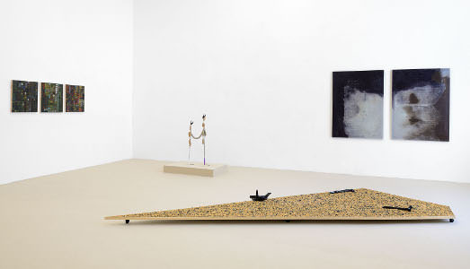 Fra le numerose opere proposte il lavoro di Tomaso de Luca che agisce direttamente sulla memoria dell’arte, come uno studente su un vecchio manuale di storia dell’arte, o quello di Elias Hansen che gioca sull’alchimia tra vetro e forme, tra oggetti trovati e luce. L’opera di Luca Francesconi, che mette in mostra l’alterazione dei materiali tra scultura e gesto; quella di Corin Hewitt, che trasforma fotografie di vedute romane in salsicce infilzate e sorrette da selfie-sticks, accanto quella di Adam Kuby che distilla da una candida sedia di Ikea un puzzle archeologico a pavimento.
