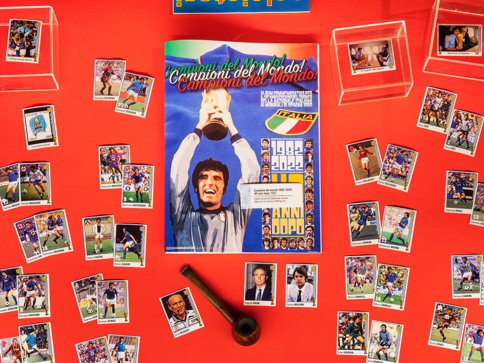 E anche le figurine che raccontano quel Mondiale sono divenute delle autentiche immagini-simbolo, per cui ancora oggi sembra impossibile pensare a questo o quel giocatore a prescindere dal suo volto stampato sui piccoli rettangoli di carta adesiva. La mostra ripercorre le tappe della nazionale italiana a partire dalle qualificazioni, passando attraverso l’esordio al Balaídos di Vigo. E poi le partite memorabili contro l’Argentina e il Brasile e gli splendidi gol che conducono l’Italia alla finale con la Germania Ovest al Santiago Bernabéu. Di quel giorno, tutti ricordano Sandro Pertini, con il suo “Non ci prendono più”, esclamato all’81’ minuto della finale di Madrid e il re Juan Carlos in tribuna, le reti di Marco Tardelli, Rossi e Altobelli e quel triplice “Campioni del Mondo!” ripetuto dal telecronista Nando Martellini, ma anche la pipa e gli occhi felici di Enzo Bearzot che di quella vittoria è stato l’artefice. In Italia esplode una festa che è il simbolo delle speranze di un Paese.