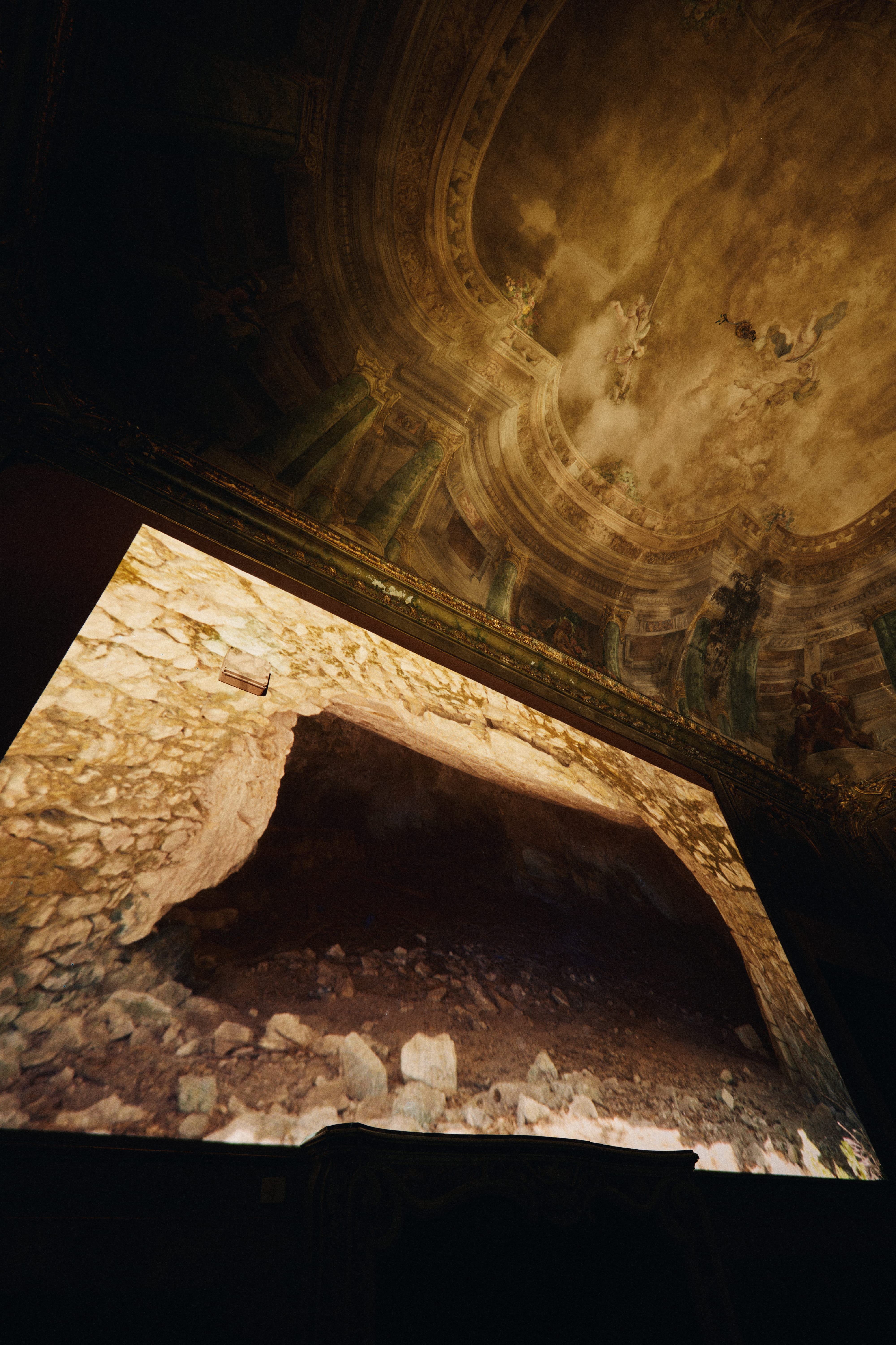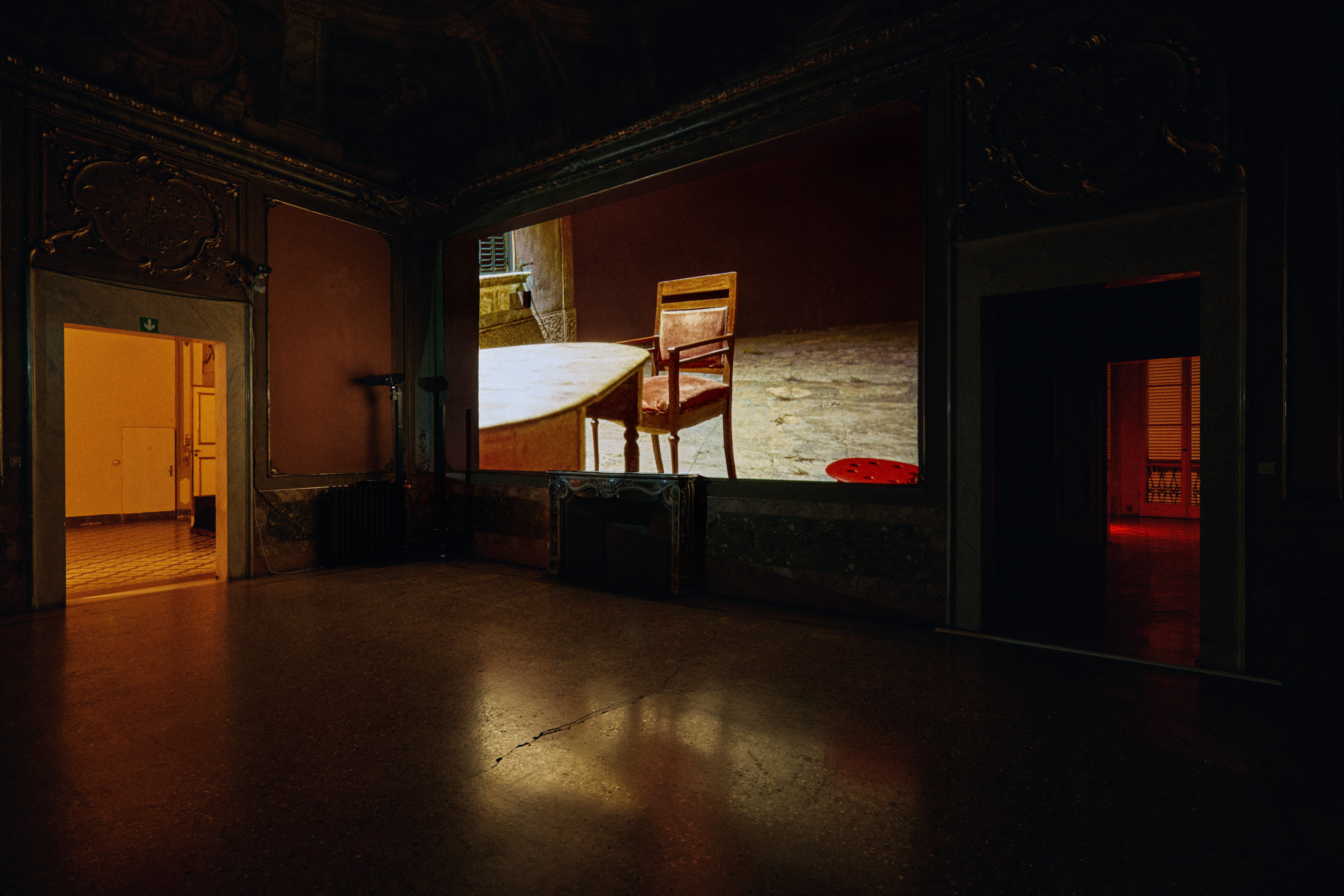 Interessante è anche il modo in cui la mostra lavora sullo spazio. Le sale settecentesche non vengono neutralizzate ma attivate come dispositivi di senso: le decorazioni, le proporzioni, la memoria architettonica entrano in dialogo con gli interventi contemporanei, generando una tensione tra ordine e disordine, tra controllo e apertura. Questa dialettica rispecchia il cuore stesso del progetto: il tentativo di abitare una soglia, di sostare in una condizione non addomesticata.