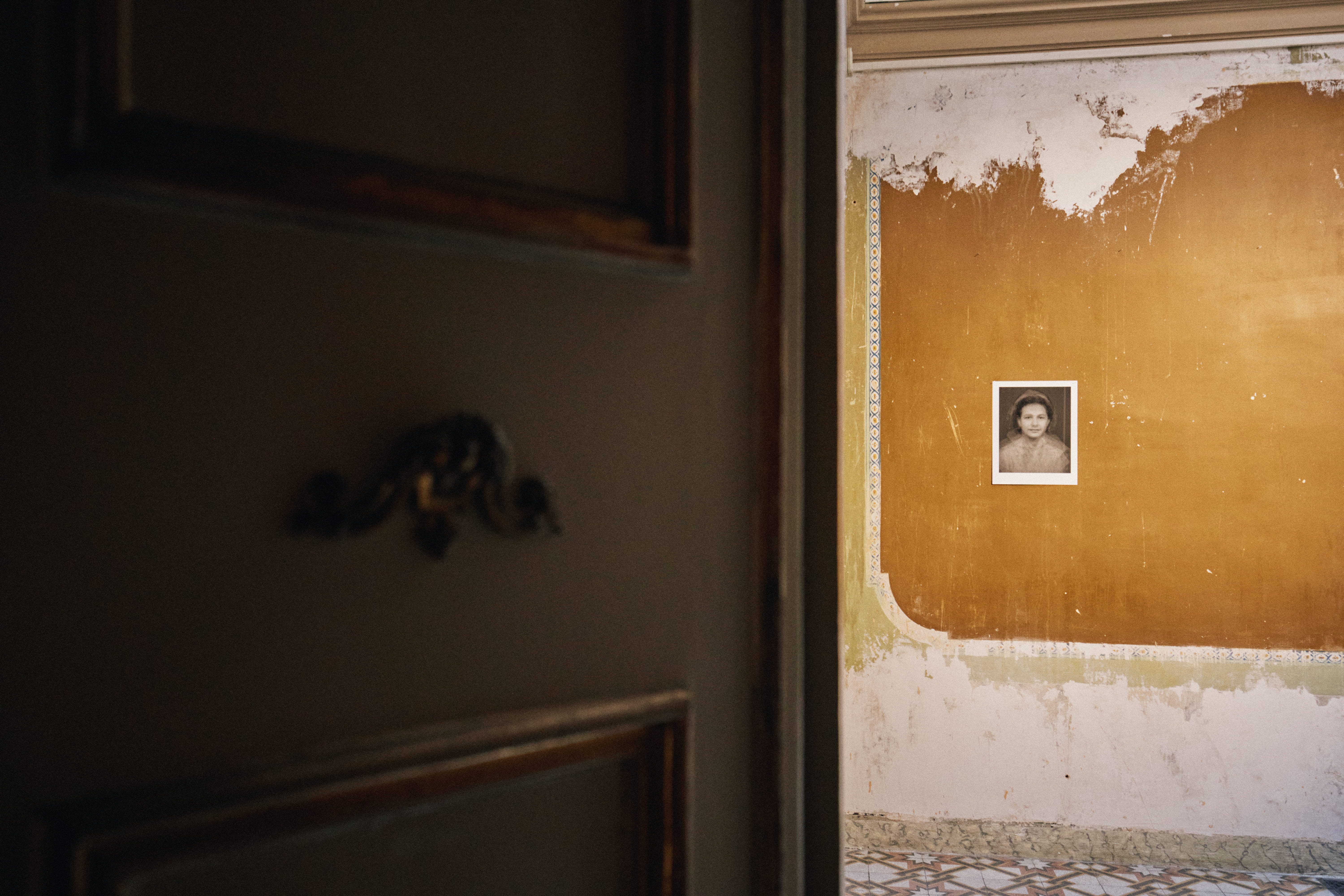 Una terza traccia narrativa è ambientata all’interno di Alchemilla a Bologna, dove l’artista Monica Cuoghi impersona una misteriosa fotografa degli anni Sessanta che, in una silenziosa camera oscura, fissa sulla carta chimica l’ultima e ambigua immagine di un ritratto che contempla più identità. L’immagine nasce dalla sintesi dei ritratti di tutti gli artisti che hanno partecipato al progetto, ai quali si aggiungono tre fototessere anonime ritrovate all’interno di uno degli ambienti della masseria. Monica Cuoghi raggruppa questi volti in un unico ritratto collettivo, dove le identità individuali si sovrappongono e si confondono con quelle di persone sconosciute, il cui legame con il luogo resta ignoto. Il gesto fotografico diventa così un atto di restituzione impossibile: l’immagine finale non appartiene a nessuno e appartiene a tutti, come il luogo che l’ha generata.