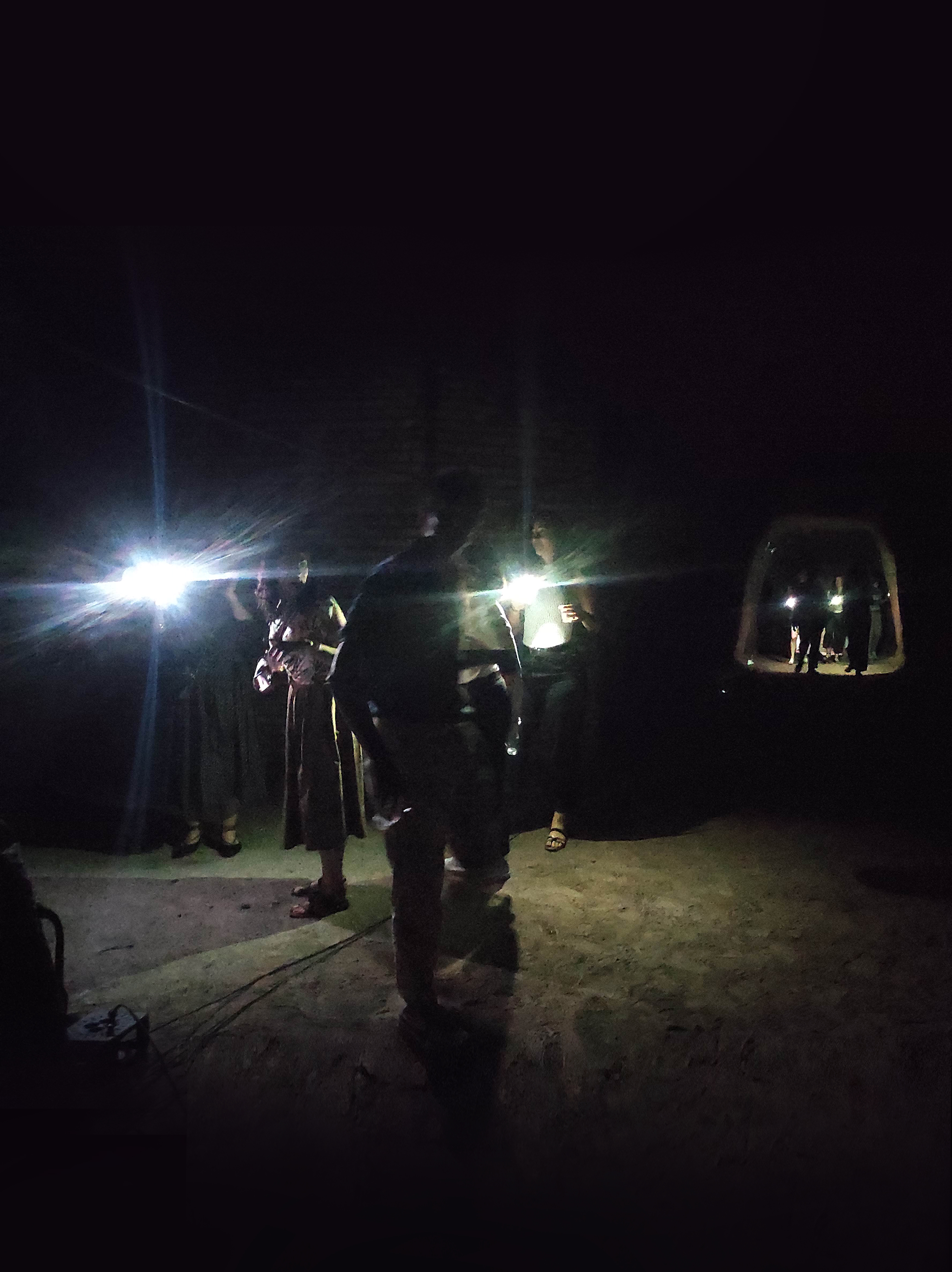 «Nigredo è un progetto transdisciplinare che prende forma attraverso l’assenza di luce. L’interpretazione del buio implica quindi una richiesta, ovvero di esperirlo nella modalità che ogni singolo individuo ritiene più opportuna. Nella maggior parte dei casi il pubblico ha fatto uso delle torce degli smartphone per orientarsi: questa azione collettiva ha reso Nigredo un atto rituale, come hai facilmente notato. Gli smartphone durante l’attraversamento dello spazio diventano un elemento compositivo molto importante per il progetto, nonostante la sua natura effimera e incontrollabile. Questo aspetto ha sicuramente una componente performativa.