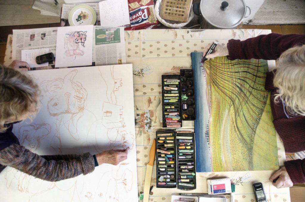 Paola invece, nel 1953, co-fondò e diresse la Galleria d’Arte Contemporanea a Firenze, introducendo in Italia per la prima volta le opere di Cy Twombly e Robert Rauschenberg. Anche Lorenza sperimentò nell’arte (e nel teatro, prima fondando il Teatro delle Marionette a Roma e poi dedicandosi a interpretare i sogni dei bambini nelle scuole – fu un esperimento fu finanziato da Franco Enriquez, direttore del Teatro di Roma) mentre Paola – che fu anche un’attiva partecipante al movimento dell’Arte Concreta a Milano ed espose in sedi come la Galleria Acqua Art a Terracina (2018), il Museo del Louvre a Roma (2019) e il Palazzo Sartorio a Roma (2020) – portò le sue ricerche a una svolta interessante intrecciandole con la sua pratica di psicoterapeuta. Ispirandosi al lavoro pionieristico di Ernest Bernhard, Dora Kalff e Barrie Simmons, che sono stati i suoi mentori, Paola Mazzetti seppe sviluppare un approccio unico alla terapia di gruppo, combinando ingegnosamente tecniche della psicologia junghiana, dell’arte e della terapia della Gestalt.