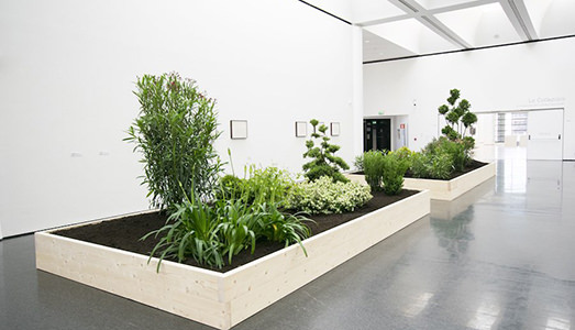 Il viatico inizia già dal foyer antistante le sale espositive con il Giardino di piante velenose, aiuole di vegetazione apparentemente innocua, che ci ricorda quanto di terribile la natura può celare dietro forme affascinati e ci indica il suo rapporto con l’artista. Quest’opera site specific posta all’inizio del percorso espositivo apre riflessioni sull’abitabilità dell’opera, in relazione al paesaggio interno ed esterno che si intravede dalle finestre del Mart.
