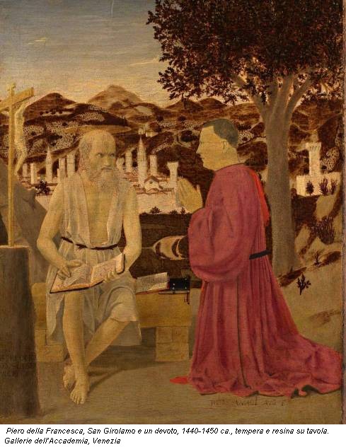 Piero della Francesca, San Girolamo e un devoto, 1440-1450 ca., tempera e resina su tavola. Gallerie dell’Accademia, Venezia