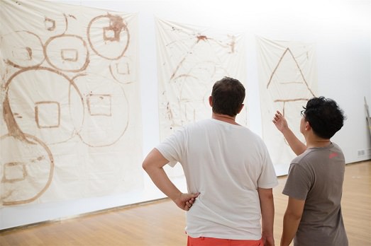 Tang Dixin e Yang-Pei-Ming sono in dialogo nella seconda sala, nella più classica declinazione della pittura ad olio, ma nel caso di Dixin dai quadri nascono performance o viceversa, in una modalità decisamente fisica e sensuale, rara in Cina.