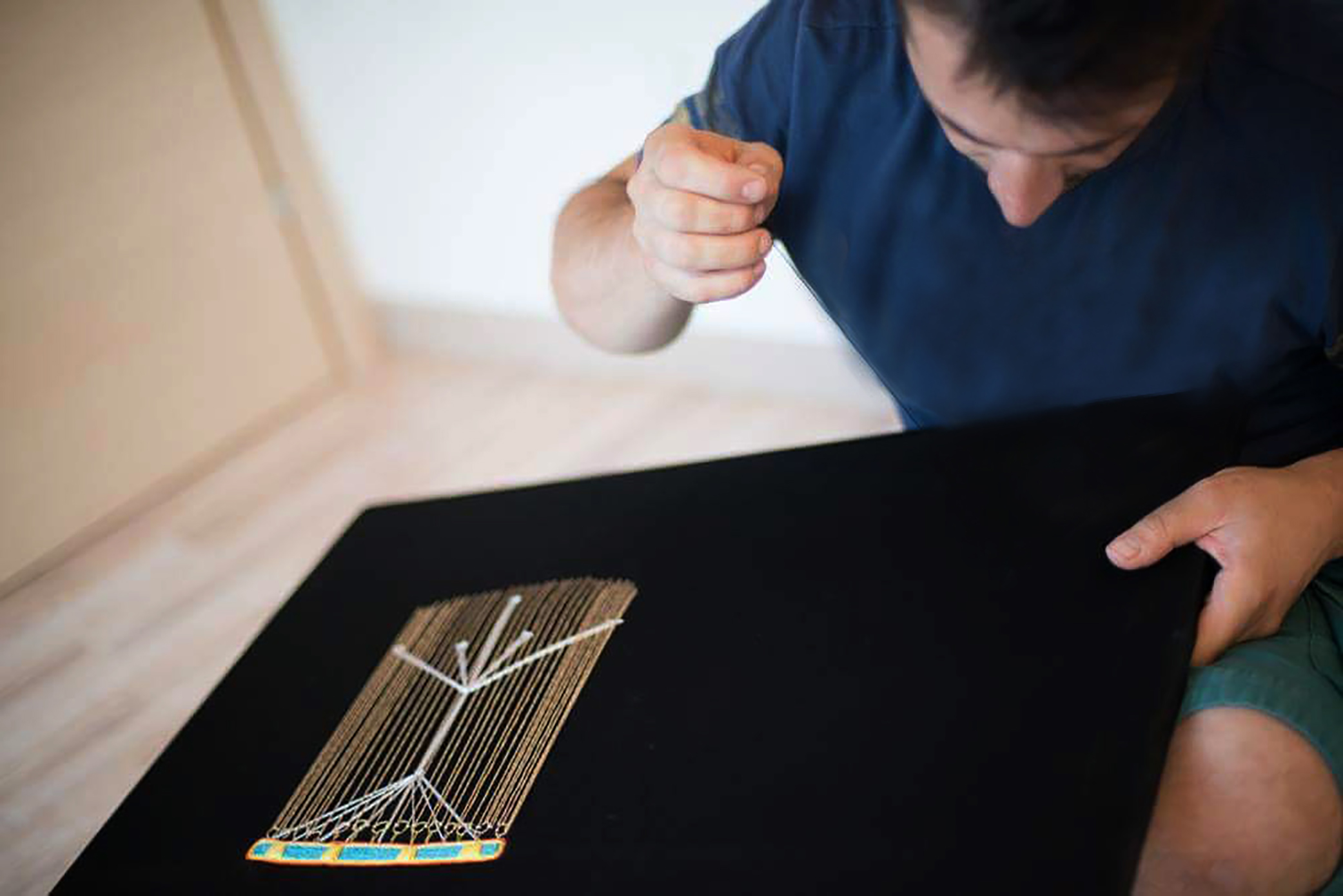 Concepita come attività partecipativa alla quale il pubblico è invitato a prendere parte seguendone le singole fasi di sviluppo, la residenza è raccontata dal curatore in un diario di bordo pubblicato sul sito della galleria. Dalle prime battute di questo diario è possibile apprendere le linee di ricerca dei due artisti: «Per Francesca Loprieno la fotografia è accumulo e catalogazione, ma anche relazione tra uomo e paesaggio. L’artista punta a lavorare sull’antica arte del ricamo, in particolare sull’immagine delle ricamatrici, dando origine ad un memoriale. Incipit della riflessione, che in corso d’opera si aprirà al paesaggio, al mare in particolare, sarà il patrimonio conservato dalle donne nei bauli (quelle che nel Salento si chiamano casce), il famoso “corredo”, vera e propria dote per la donna, testimonianza di storia familiare, fatta di sforzi collettivi e di aspirazioni sociali. Un lavoro di accumulazione d’immagini di warburghiana memoria, attraverso cui Loprieno proietterà nel presente un sapere antico, raccontando storie personali che hanno però carattere universale, attraverso le quali potrà rintracciare à rebours le immagini primordiali, gli archetipi. Per Gianfranco Basso il ricamo è il mezzo espressivo prediletto, valido tanto sulla tela quanto nello spazio. L’artista, partendo dal cerchietto delle ricamatrici, ma anche dai tamburelli e dai setacci (denominati nel Salento farnari), risalirà al cerchio come forma archetipa, struttura primaria e generativa. Anche per lui il ricamo, dunque, costituirà il viatico per l’Urbild».