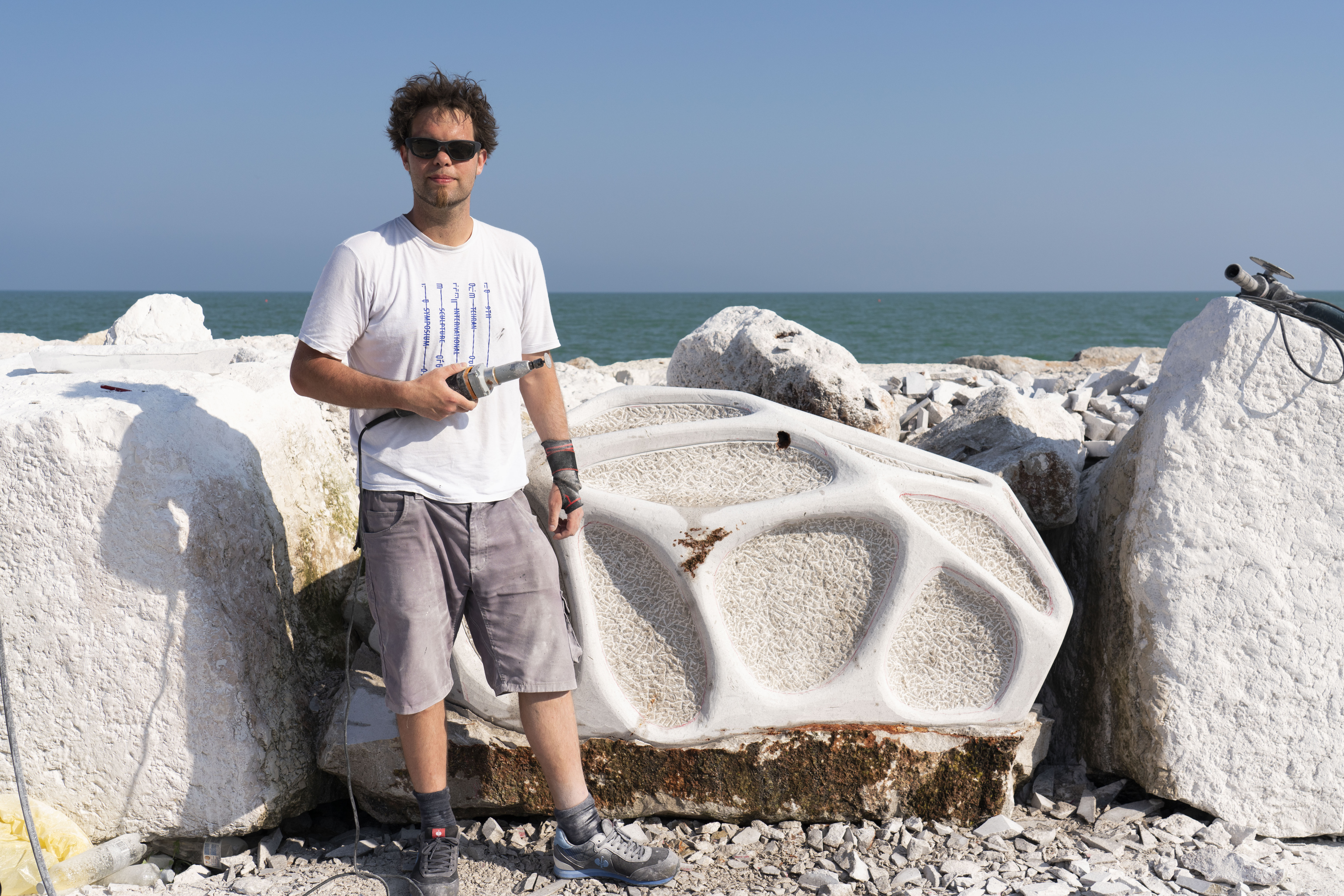 Dalla Slovenia arriva Arijel Štrukelj, classe 1987, che lavora su temi esistenziali e spirituali. Le sue sculture sono interrogazioni in forma di pietra: manifestano tensione e silenzio, raccontano un legame profondo tra individuo e cosmo. La scogliera, con i suoi pieni e vuoti, diventa così palcoscenico di una meditazione laica sull’umano.