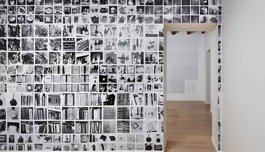 Nella seconda sala svela un aspetto più intimo di LeWitt Autobiography (1980), pubblicazione diventata tra i più celebri libri d’artista, che descrive lo spazio di lavoro di LeWitt, composto da una riproduzione di una selezione di immagini delle pagine del volume in due diversi formati, trasformate in membrana dell’architettura, che mostrano mobili, utensili, libri, dischi, cibo, stoviglie; cose che raccontano l’artista, assente. Ciascuna delle nove fotografie di ogni pagina è disposta in formato a griglia, lo stesso metodo di organizzazione delle informazioni di LeWitt. Nella terza sala fanno capolino gli Scribbles, una serie di wall drawing eseguiti a partire dal 2007, in apparente contraddizione con la logica dell’autore manifestata attraverso geometrie pure, a testimonianza di un’altra logica aleatoria, quasi sensuale. Wall Drawing #1267: Scribbles è stato installato la prima volta presso la Fondazione Morra Greco a Napoli nel 2010, alla Fondazione Carriero sorprende una parete curva che sembra fagocitare ambiente e visitatori. Anche Wall Drawing#123° (realizzato per la prima volta nel 1991) si rivela in tutta la sua originalità progettuale. Attenzione al Wall Drawing#46, lungo la scala che collega i piani della Fondazione Carriero (realizzato nel 1970 per la prima volta a Parigi da LeWitt) perché da questo momento Koolhaas ha puntato sulla messa in valore della diversità che si nasconde dietro il lavoro di LeWitt. E, tra i disegni dei wall drawing (quasi affreschi monocromi contemporanei), le barre di alluminio di Open (lo scheletro del cubo) e altre opere esposte, “Between the Lines” svela il suo obiettivo: riflettere sul fatto che sia l’opera a doversi adattare all’architettura, sovvertendo il concetto di site specific. Giunti al primo piano cominciate a porvi il problema del rapporto tra scultura e piedistallo, una riflessione che LeWitt ha condiviso con Carl Andre, Donald Judd e altri protagonisti del minimalismo americano.