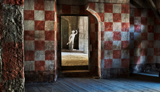 «Quando qualche anno fa chiedemmo a Steve quale luogo dell’Italia volesse fotografare per primo, ci sorprese rispondendo Cinecittà. È da allora che insegue il desiderio di una mostra in questi luoghi», racconta Biba Giacchetti, curatrice della mostra insieme a Peter Bottazzi che ne ha curato anche l’allestimento. E l’allestimento, come tutte le ultime mostre di McCurry in Italia, gioca un ruolo molto importante. Il Teatro1 – che viene inaugurato come nuovo spazio espositivo di Roma per la prima volta con questa mostra – è stato disegnato da Bottazzi con un allestimento fatto di teli scuri ai quali le immagini si appoggiano, ma che nello stesso si frappongono tra una fotografia e l’altra, mettendo in risalto una immagine e offuscando la vista delle altre, creando piani diversi esattamente come nell’obiettivo fotografico: dipende dall’osservatore scegliere cosa e quando mettere a fuoco. Estremizzando quanto già avevano realizzato nell’allestimento delle mostre di Milano e Perugia, i curatori mettono completamente nelle mani dello spettatore la possibilità – potremmo dire l’inevitabilità – di perdersi e di scegliere il proprio percorso, di seguire ed inseguire le immagini, di mettere a fuoco la storia che preferisce, o semplicemente perdersi nelle storie che gli sguardi ed i luoghi immortalati da McCurry raccontano con la sensazione, talvolta, di essere non tanto osservatori, quanto osservati.