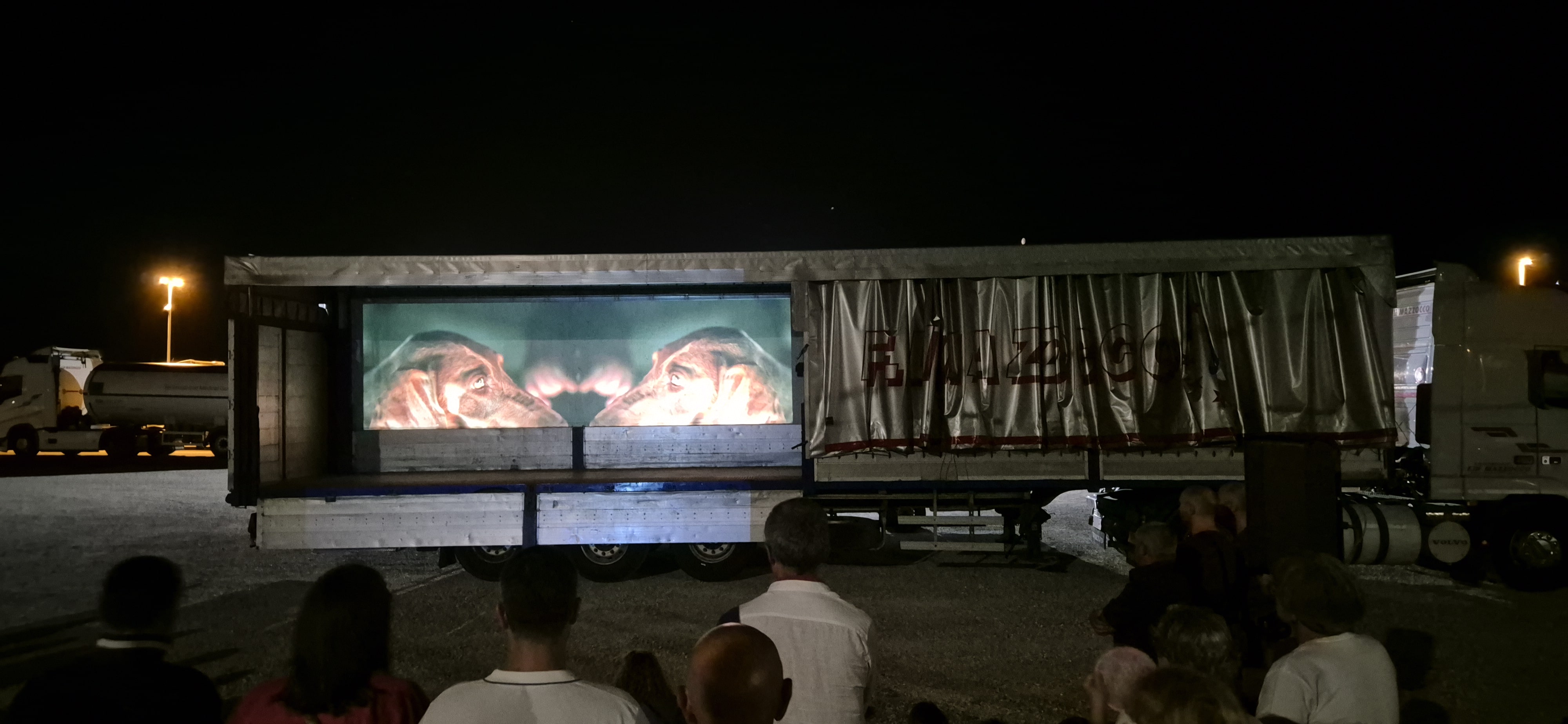 Valentina Furian ha invece realizzato Moon, una videoinstallazione onirica e straniante, ambientata all’interno di un camion industriale. Protagonisti del film, girato con il coinvolgimento di abitanti locali, sono cowboy acquatici che abitano una mitologia contemporanea fatta di inquietudini e paesaggi di confine, in bilico tra realtà e sogno, natura e infrastruttura.