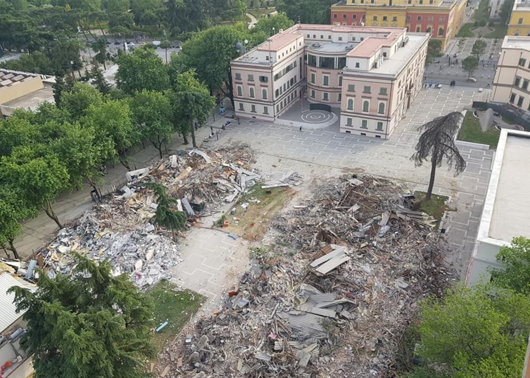 Il Teatro Kombetar, costruito nel 1939 dall’architetto Giulio Bertè, è stato demolito la mattina del 17 maggio 2020, lasciando uno spazio vuoto nel centro di Tirana. La decisione era stata presa dal governo di Edi Rama già nel 2018 ed è stata portata avanti nonostante l’opposizione di larghe fasce della popolazione e le proteste di tanti operatori culturali. Al suo posto, al posto di 80 anni di storia – dal triste episodio dell’occupazione fascista alla costituzione del Teatro Nazionale, come fu chiamato nel 1991 – un nuovo teatro, commissionato all’archistar Bjarke Ingels e al suo gruppo. Sovrascrivere quello che, nel bene e nel male, è stato un simbolo dei sedimenti lasciati dalla storia, non è mai un gesto neutrale. A lasciare un segno ci invita TabulaRasa, iniziativa nata in risposta a questo episodio, realizzare, cioè, un intervento grafico o testuale sulla fotografia aerea del Teatro Kombetar ridotto in macerie, per conservare la nuova immagine in un archivio online.