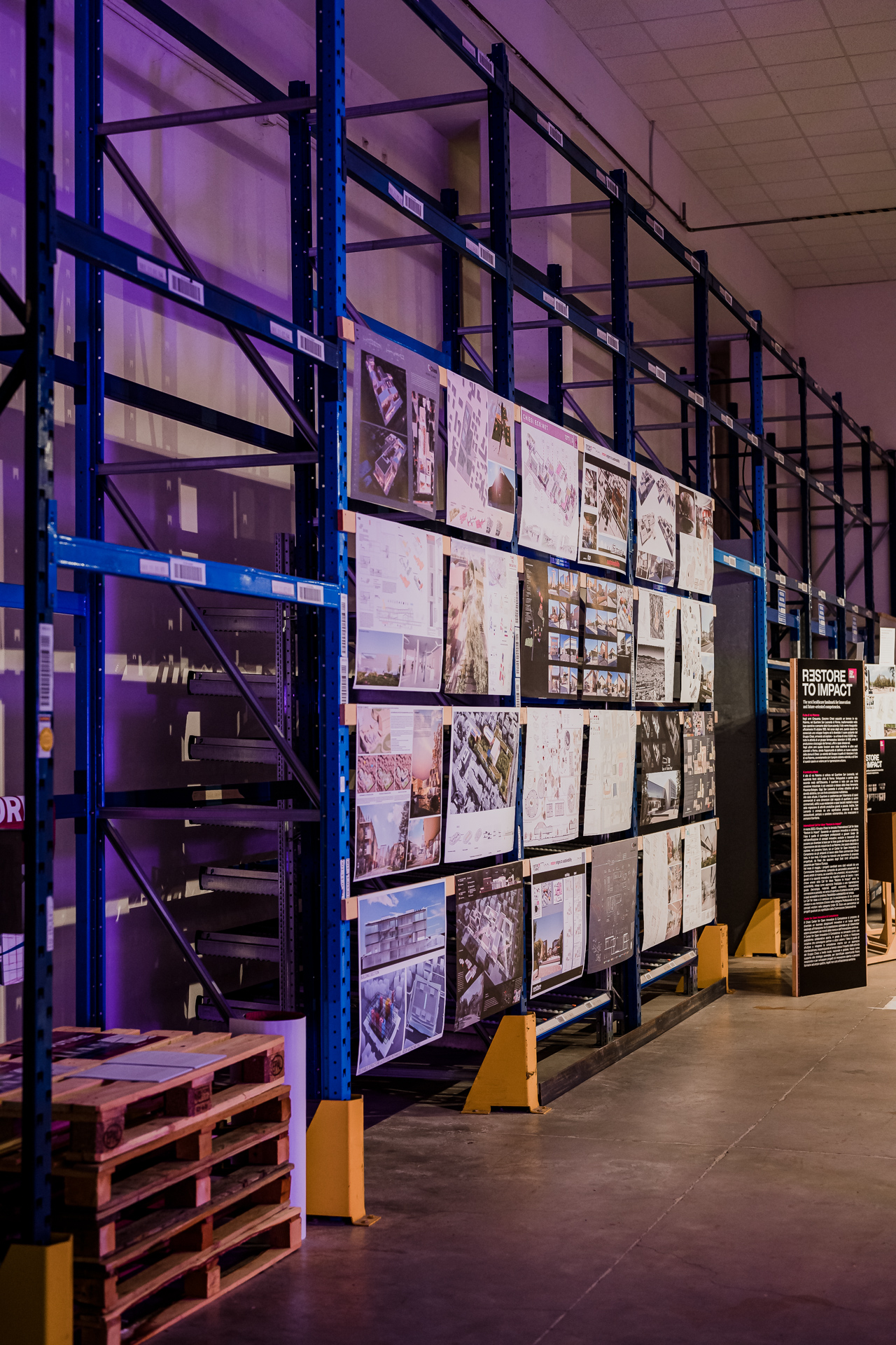Attraversando la struttura, si entra nella sezione Present con un’esposizione sia orizzontale che verticale dei miglior progetti selezionati dalla Call for Ideas internazionale Restore to Impact. L’open call è stata indotta dal Gruppo Chiesi a marzo 2023, rivolta alle categorie professionisti e under 30, finalizzata a una riflessione aperta e partecipata per ideare un progetto architettonico innovativo, di rigenerazione e riqualifica urbana, dell’intero sito di via Palermo. L’obbiettivo è quello di strutturare un polo dinamico capace di tessere una relazione tra l’Azienda e la comunità cittadina di Parma attraverso interazione, progettualità e formazione dalle competenze condivise. Questa riflessione del Gruppo nasce dopo aver decentrato, a partire dagli anni Ottanta, la produzione nel plant di via San Leonardo, ora pronto ad accogliere il Biotech Center of Excellence, riconoscendo qui, nel sito di via Palermo, un’occasione di trasformazione, di rigenerazione e di rilancio del quartiere stesso. La riqualificazione del sito si tradurrà con la creazione del COI&C -Center for Open Innovation and Competence: uno spazio aperto e collaborativo, accessibile alla comunità e dall’approccio interdisciplinare, capace di attivare un dialogo sinergico tra le competenze interne del Gruppo Chiesi e quelle esterne, accogliendo e finalizzando nuove iniziative. Scrivendo un nuovo capitolo nella storia dell’Azienda.