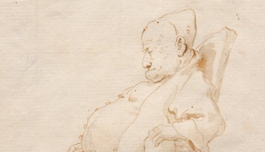 Giambattista Tiepolo Caricatura di gentiluomo che dorme in poltrona penna e inchiostro bruno, inchiostro diluito bruno, tracce di quadrettatura a grafite, mm 221x171 Trieste, Civico Museo Sartorio, inv. 2084