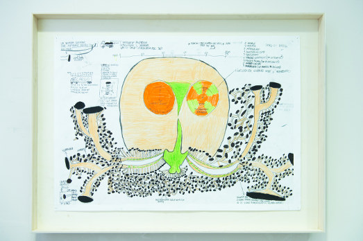 Arte che, tra l’altro, funzionerebbe bene in qualsiasi galleria ben pettinata di New York, Londra o Hong Kong, incline a mettere in scena una produzione legata al disegno. Arte che ricorda le produzioni infantili o degli internati tanto cari alla poetica di Jean Dubuffet, di Antonin Artaud o, avvicinandoci al presente, ai meravigliosi animali in china di Kiki Smith