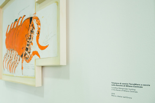 L’Atelier dell’Errore ci porta, attraverso Uomini come cibo, questo il titolo catartico e “orrorifico” della mostra, in un vortice dove quaranta opere ribaltano le prospettive di Expo 2015 (finalmente!), e dove il cibo è carne umana, divorata in maniera visionaria da un bestiario che è una collezione vera e proprio di fantasticherie sul filo della realtà. «Il riscatto sociale dallo stato di assedio in cui spesso si ritrovano i giovani artisti inizia dall’esorcizzare la paura, lasciando affiorare potenti e immaginifici esseri zoomorfi che divengono i loro protettori o i loro giustizieri», spiegano i curatori.