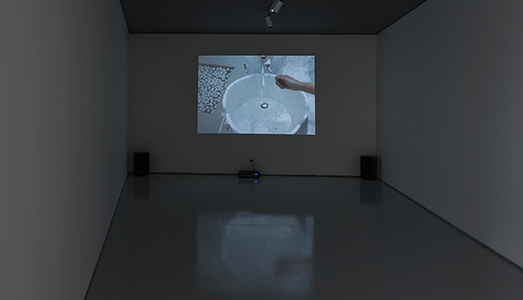 La mostra si articola sul piano ammezzato del MEF ridefinendo l’ulteriore spazio esterno. L’ingresso è demarcato da un ampio separé in plastica, di quelli che si usano per dividere gli ambienti in locali popolari, spesso sull’uscio di bar di provincia condannati per sempre a una condizione malmessa, e la scritta riportata è un aforisma sull’ideologia.