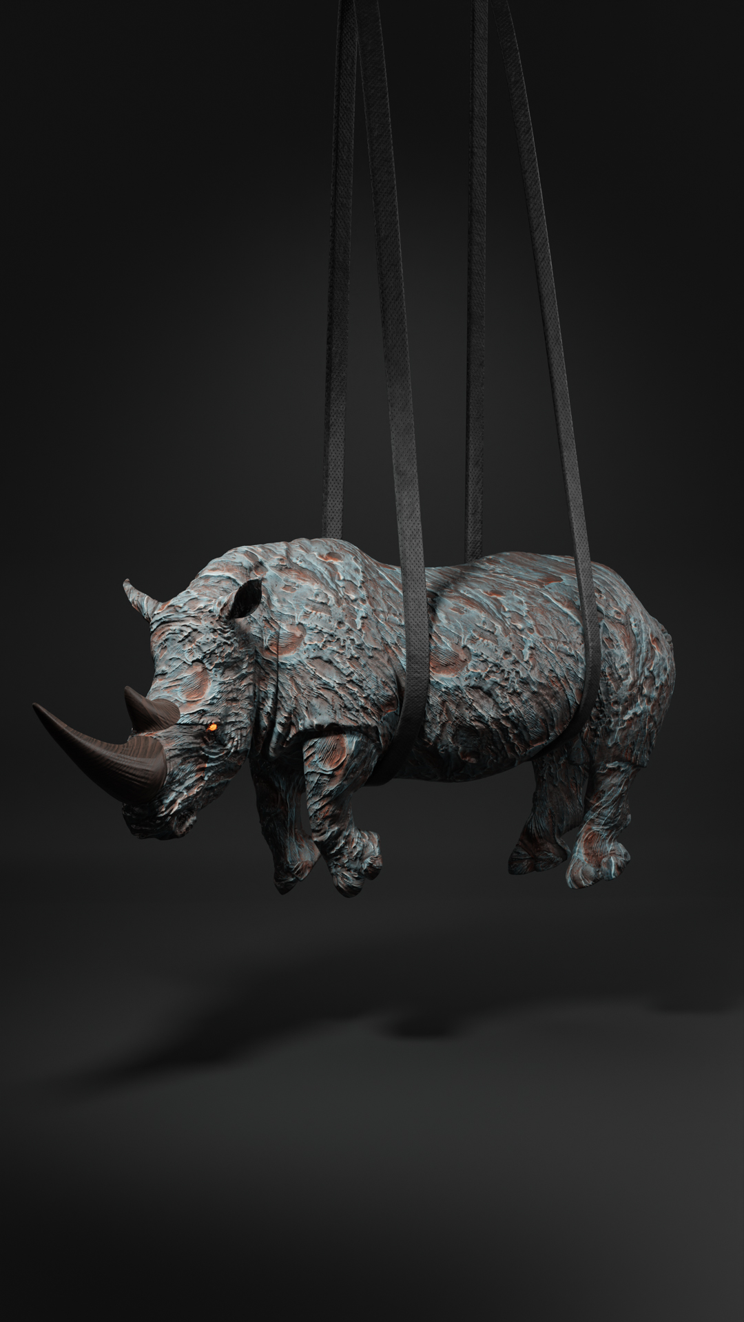 Pesa di più un rinoceronte in pietra o una stringa di codice? Sabato, 28 gennaio, Stefano Bombardieri presenterà, presso la Galleria Gare82 di Brescia, un’asta per “Il Peso del Tempo Sospeso IMPRINT 1/1”, versione unica di un’opera che ritrae un rinoceronte – figura ricorrente nel lavoro dell’artista – in tre forme: scultura fisica, corrispettivo NFT e ologramma dell’NFT, esposto all’interno di una teca.