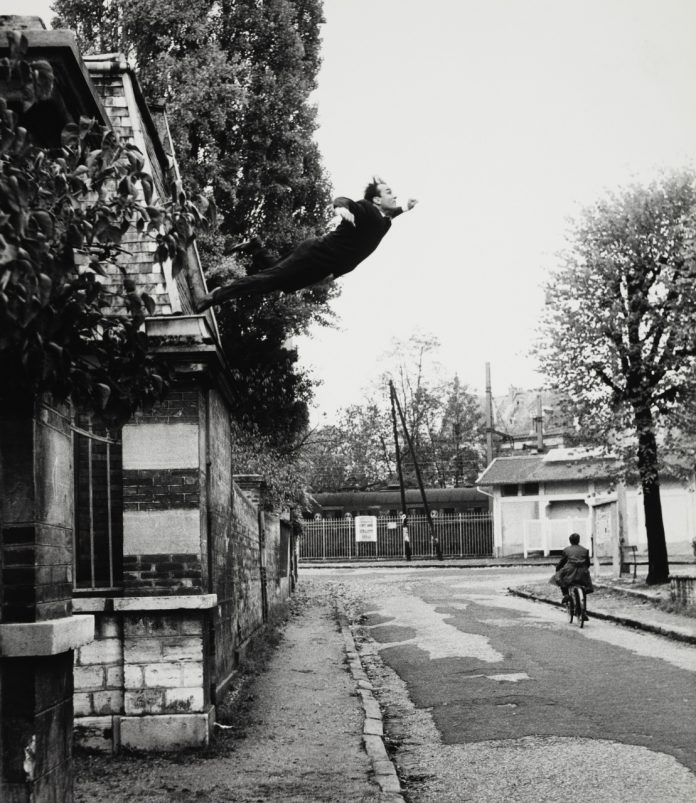 Uno scatto ormai diventato iconico della carriera dell’artista è Le saut dans le vide. La fotografia rappresenta il giovane artista che sembra lanciarsi nel vuoto da un primo piano di una palazzina. Le sue braccia si librano sopra una strada deserta attraversata soltanto da un uomo su una bicicletta. Si può ben vedere come i due fotografi non siano estranei al processo creativo ma anzi partecipino alla realizzazione dell’opera stessa.