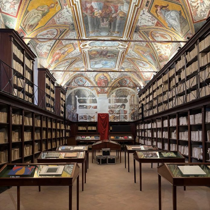 L’allestimento napoletano si snoderà nel chiostro del Platano, dove le opere entreranno in risonanza con l’imponente architettura dell’Archivio di Stato. Questo spazio carico di memoria diventa così teatro di una nuova narrazione, in cui il linguaggio visivo contemporaneo si confronta con la stratificazione storica del luogo. L’incontro tra gli archivi di Venezia e Napoli suggella un dialogo culturale che affonda le radici in secoli di scambi artistici e intellettuali.