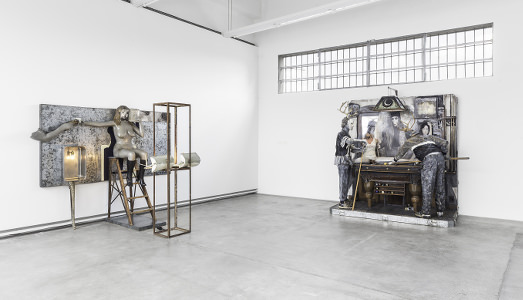 Consacrato a Kassel nel 1972, quando Harald Szeemann mise in scena Five Car Stud a Documenta 5, Kienholz era stato anche tra i protagonisti di “The Art of Assemblages”, al MoMA di New York nel 1961, sotto la curatela di William Seitz. Da lì era decollata la sua carriera, che oggi incontriamo a Milano insieme al suo profondissimo sguardo americano che ha fatto proprio dell’assemblaggio, tecnica congeniale al Nouveau Réalisme e ai Neo Dadaisti, da Gérard Deschamps fino a Robert Rauschemberg, alla tedesca Hannah Höch (quest’ultima anticipatrice in qualche modo anche di un’estetica cruda e intrisa di catartica violenza) il medium d’eccellenza per raccontarci allo stesso modo nefandezze private e sociali, con una sorta di profondo distacco. La brutalità compositiva è un’altra parola chiave dello stesso racconto, ed è difficile trovare una “scena pulita” in Kienholz: tutto trasuda sbavature: colla, resina, colore, tagli, ruggine metallica, unioni improbabili di oggetti; un’estetica che permette di scoprire i crismi della cronaca nera, di quello status borderline che si nota dietro le case ordinate dell’americano middle class, che qui invece è tramutato quasi in bestia.