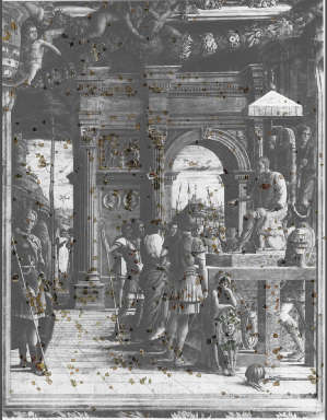 L’anastilosi informatica è stata finora applicata a due scene che affrescavano la parete sinistra della Cappella, “S. Giacomo innanzi ad Erode” e “Andata al martirio di S. Giacomo”, sulle quali è stato possibile posizionare (virtualmente, ovvio) 1226 frammenti.