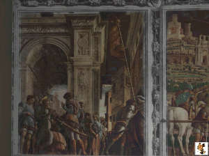 La decorazione della Cappella era stata commissionata nel 1448 da Imperatrice Ovetari, in memoria del marito defunto, ad Andrea Mantegna, Nicolò Pizolo, Giovanni d’Alemagna e Antonio Vivarini. Il ciclo eseguito tra il 1448 e il 1460 rappresentava le storie dei Santi Giacomo e Cristoforo; considerati il capolavoro giovanile del Mantegna e il punto d’avvio del rinascimento padovano, gli affreschi dimostrano “la formazione ….sui modelli di Donatello, per il gigantismo delle figure, la marcata espressività nei volti e nei gesti, la composizione prospettico-spaziale” (Anna Maria Spiazzi).