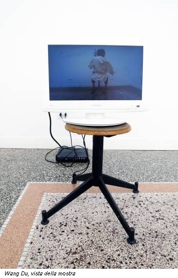 Il giorno di apertura della mostra, “Someday”, Wang Du, seduto su uno sgabello con le spalle voltate al pubblico come una tigre in gabbia, si è cimentato in una serie di attività quotidiane, da lui solitamente svolte nell’orario della colazione, come bere tè, leggere il giornale, o suonare l’erhu, tradizionale strumento cinese. L’azione è stata documentata in un video, dal taglio documentaristico, esposto in mostra insieme al camice indossato dall’artista, che ha la funzione di residuo.