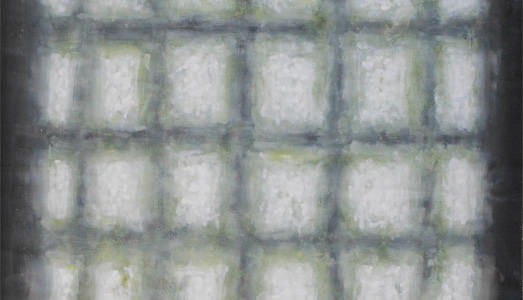 I due grandi dipinti appesi alla parete si presentano come bagliori dalla finestra; nelle loro trasparenze unite però all’opposto del nero bitume, evocano antiche cattedrali gotiche anche se qui è la luce a dominare lo spazio.
